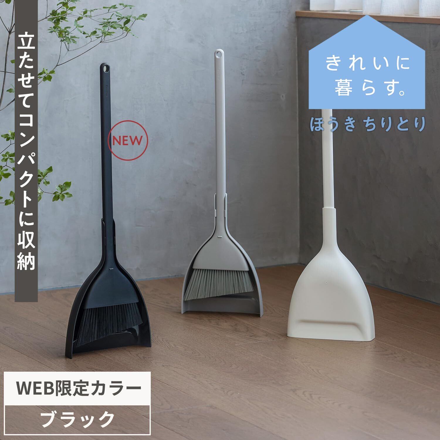 マーナ (marna) ほうき ちりとり セット (自立式/スリムでコンパクトに収納) 箒 塵取り (室内/屋外/ベランダ 玄関 掃除) ブラック R452BK