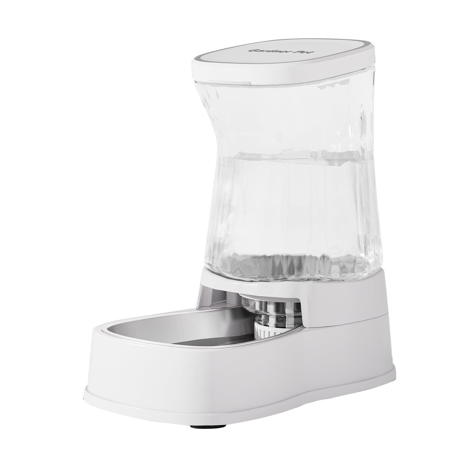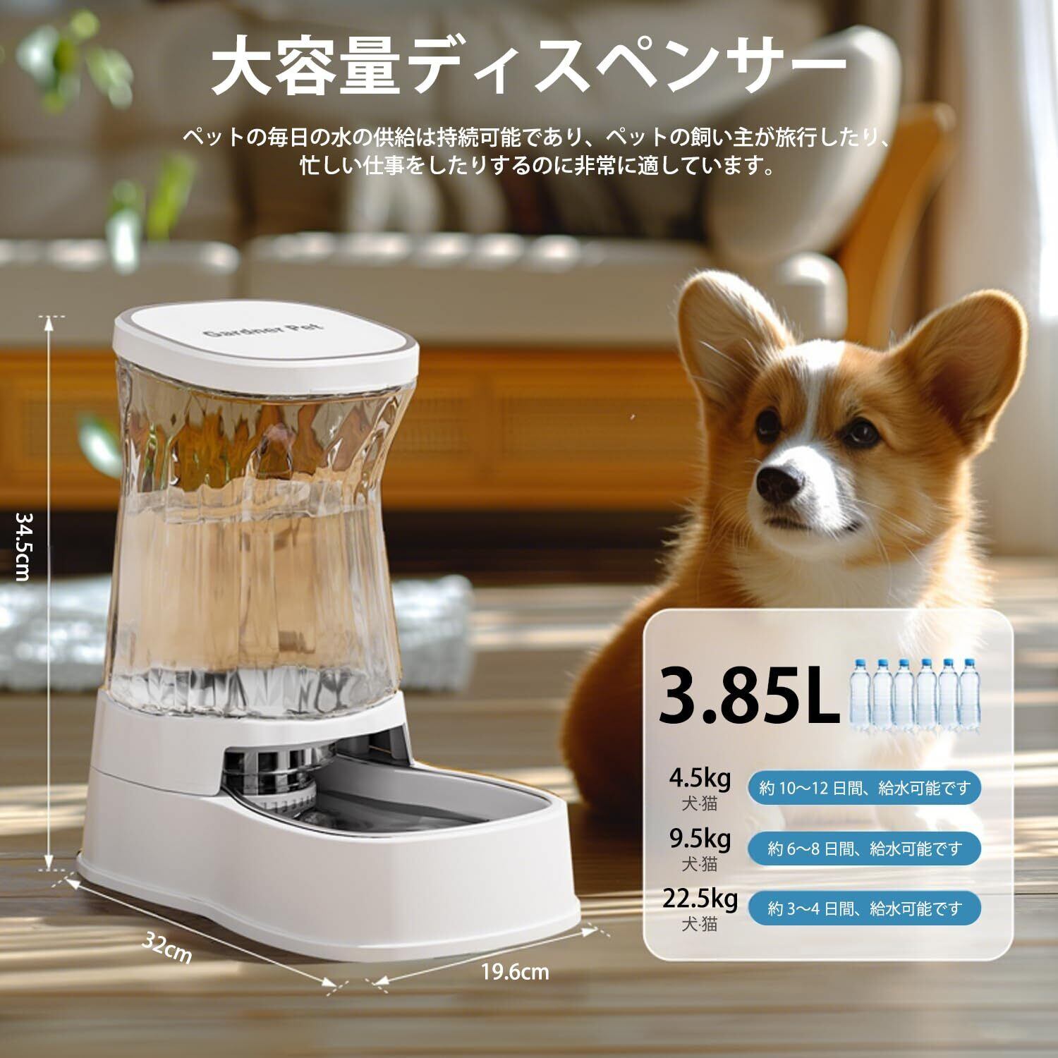 Gardner Pet 犬猫用 自動給水器 3.85L 大容量【ステンレス製ボウル + 交換不要フィルター】 ペットウォーターディスペンサー 小型犬 大型犬 子犬 猫用 宝石カットのクリアデザインで上品 水飲みボウル 給水器 BPAフリー おしゃれデザイン (ホワイト, 3.85l)