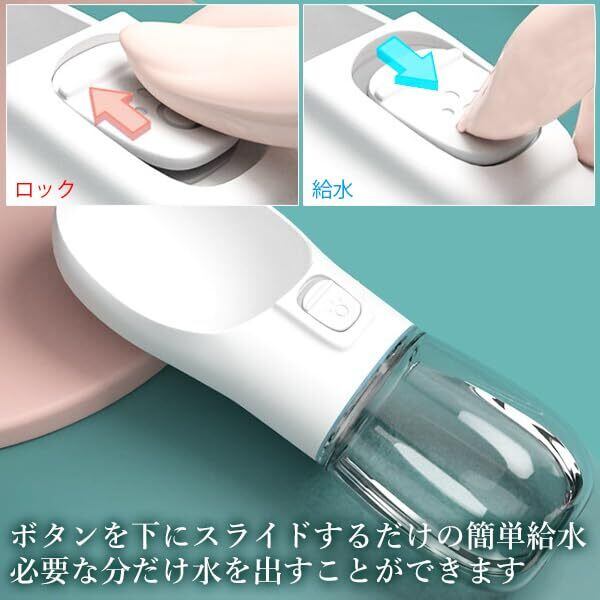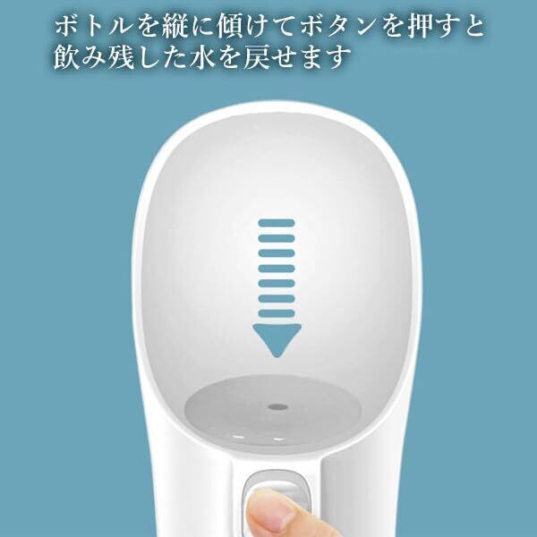 【商品説明】 ・お散歩やお出かけ時の必需品ペット給水ボトル。 ・飲み口が広く、ペットが飲みやすい形状になっています。 ・ワンプッシュですぐに水が出るため、お散歩中もラクラク給水可能。 ・ロック付きのため、カバンの中での水漏れもなく安心です。 ・飲み残した水は傾けてボタンを押すだけで水がボトルに戻ります。 ・丸洗い出来るため衛生的に管理できます。 ・ストラップ付きの為、手やバッグにかけながら、給水のタイミングですぐに取り出せます。
