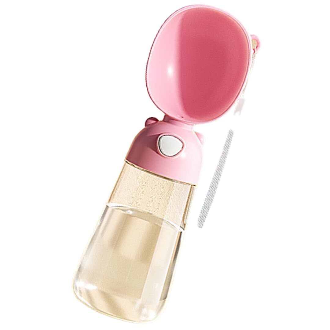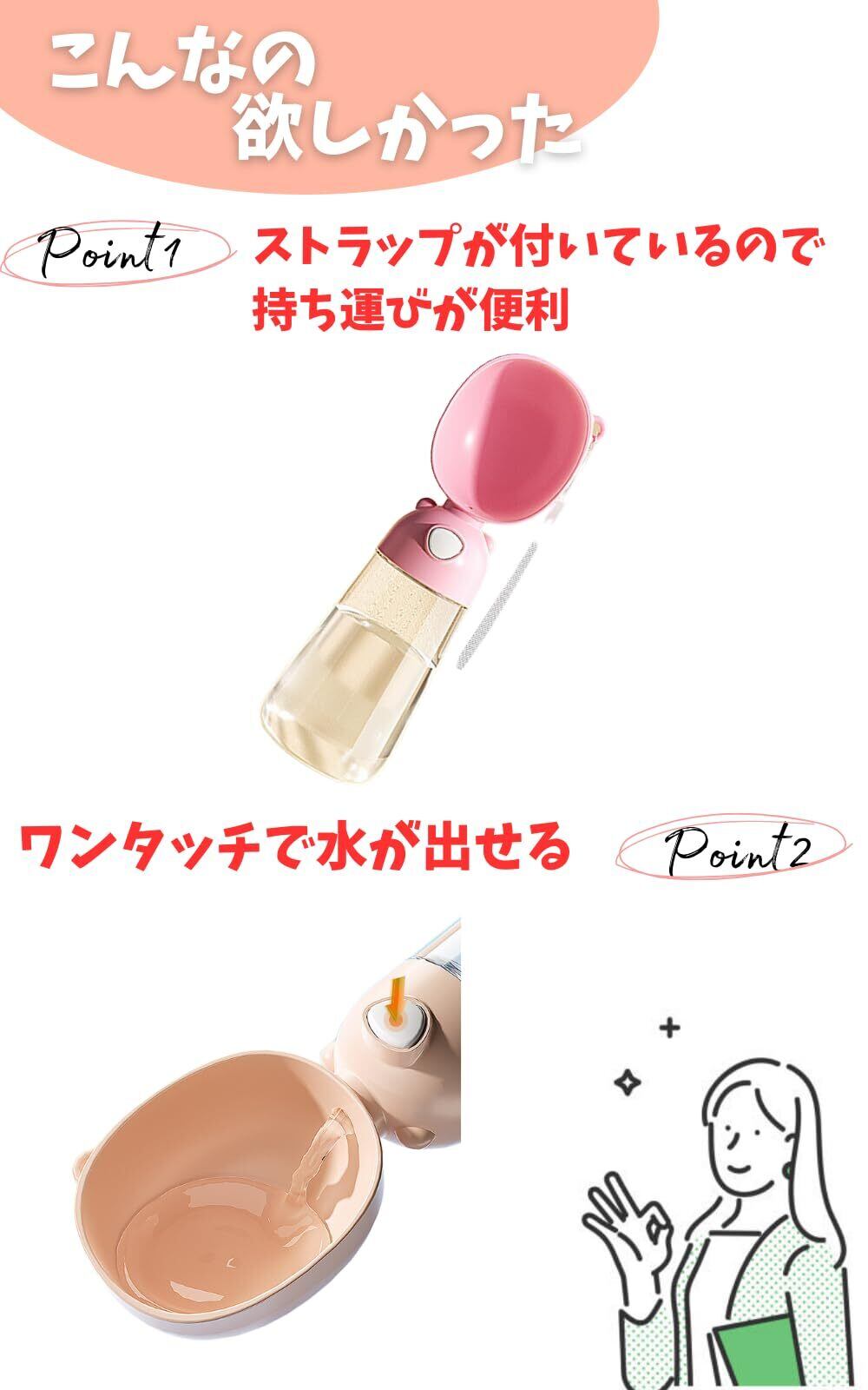ペット用水筒 ウォーターボトル 散歩 水飲み ペット水飲み器 水漏れ防止 手軽に水分補給が出来る 外出 ペット用品 水飲みボトル 380cc (ピンク, 0.38L)