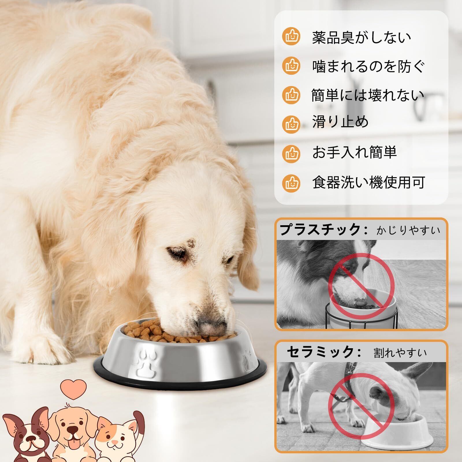 ※耐久性のあるステンレス鋼を使用しております、無毒、無臭、丈夫で安全性が高いです。軽量で持ち運びがやすいし、ペットが安定して食べるとができ、とても便利です。