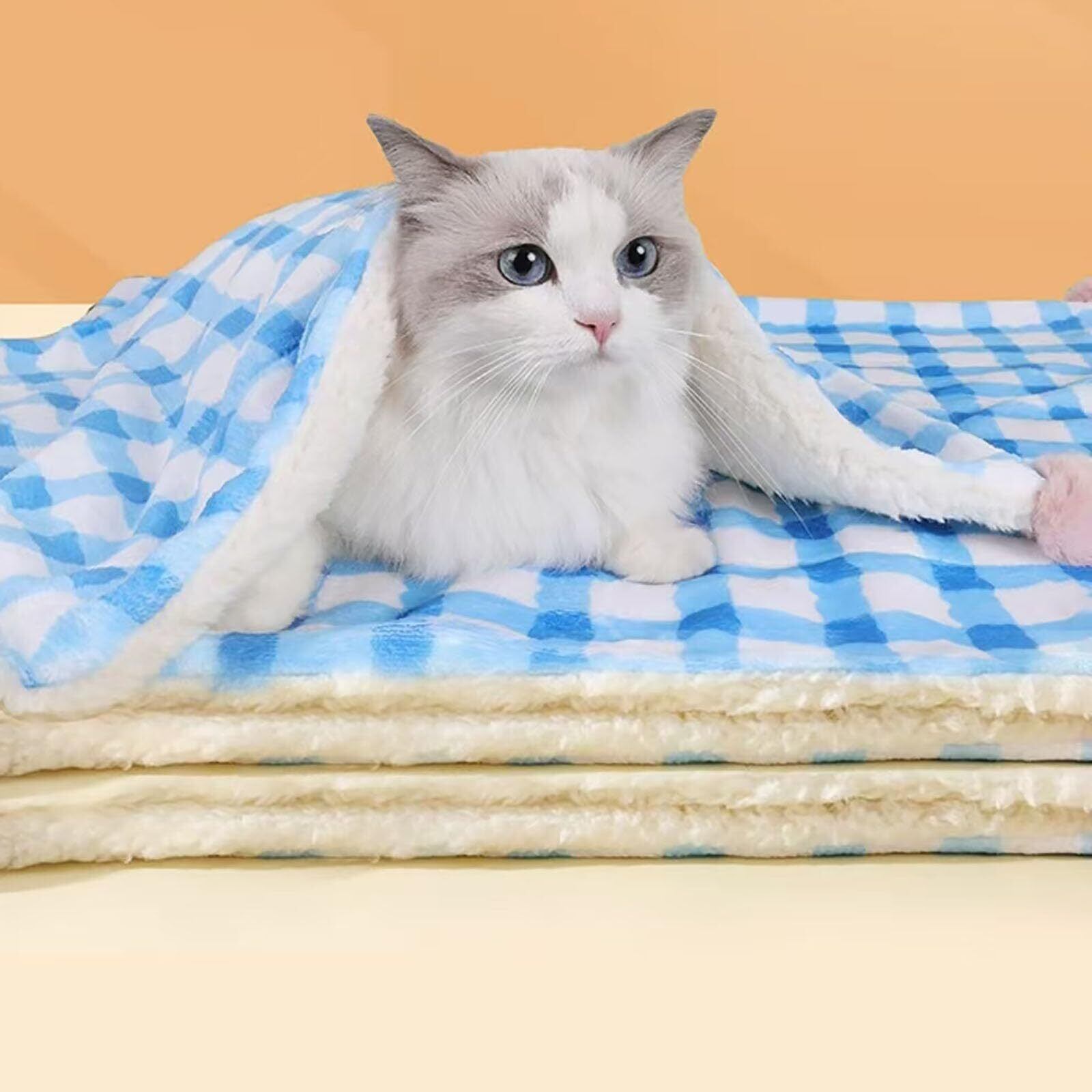 ペット用 ブランケット 毛布 犬猫 布団 可愛い ひざ掛け スクエア型 暖かい 秋冬の防寒 保温 洗える 防寒マット お部屋 車内 犬小屋 多機能 タオル 犬 猫 兼用 毛布 敷き物 お出かけ 小中大型ペット用 (青色, S)