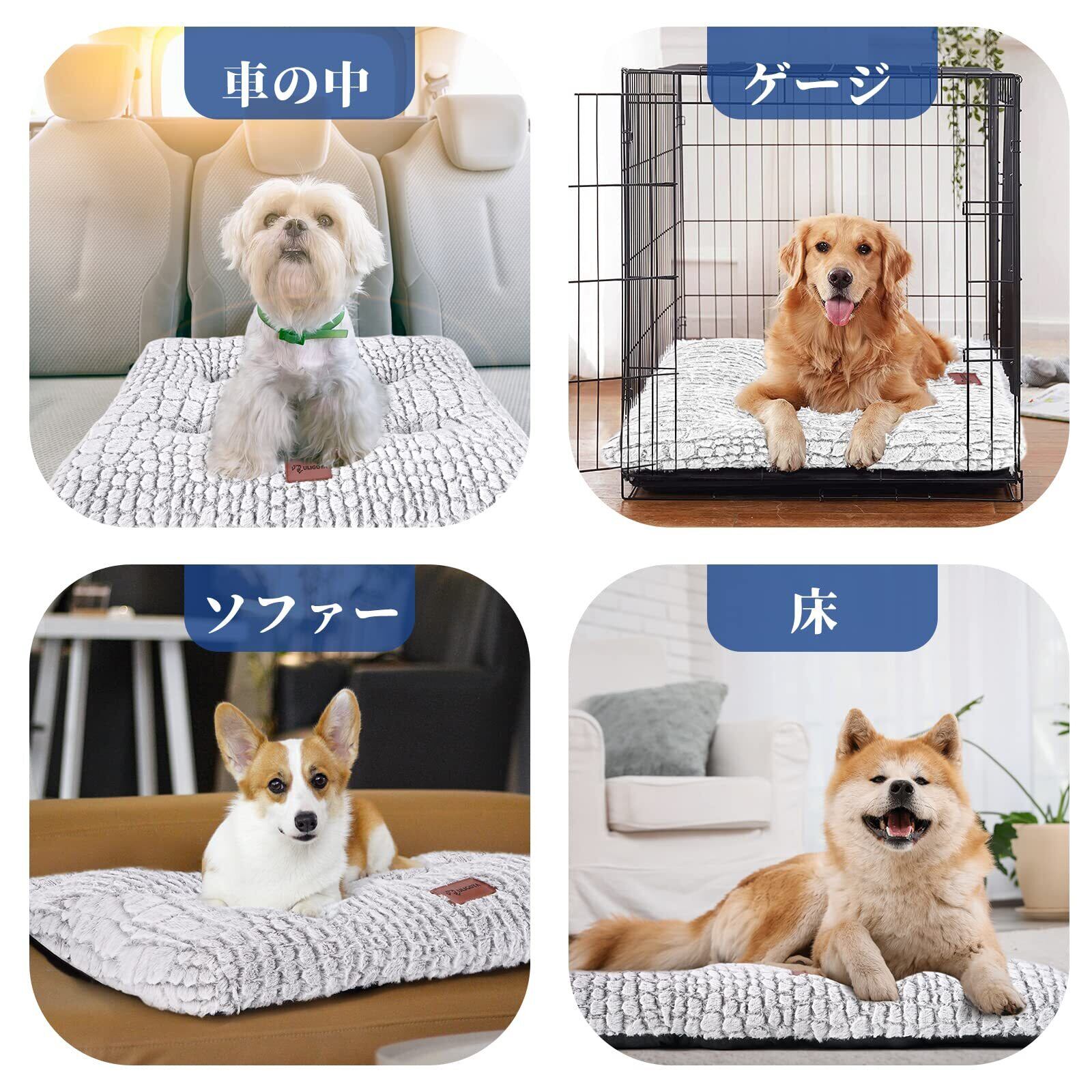 どんなワンちゃんネコちゃんでも対応できる豊富なサイズ展開。Sサイズ:60×45cm;Mサイズ:75×50cm;Lサイズ:90×60cm;猫や小型犬、中型犬、大型犬はもちろんのこと、多頭飼いの方にもオススメです