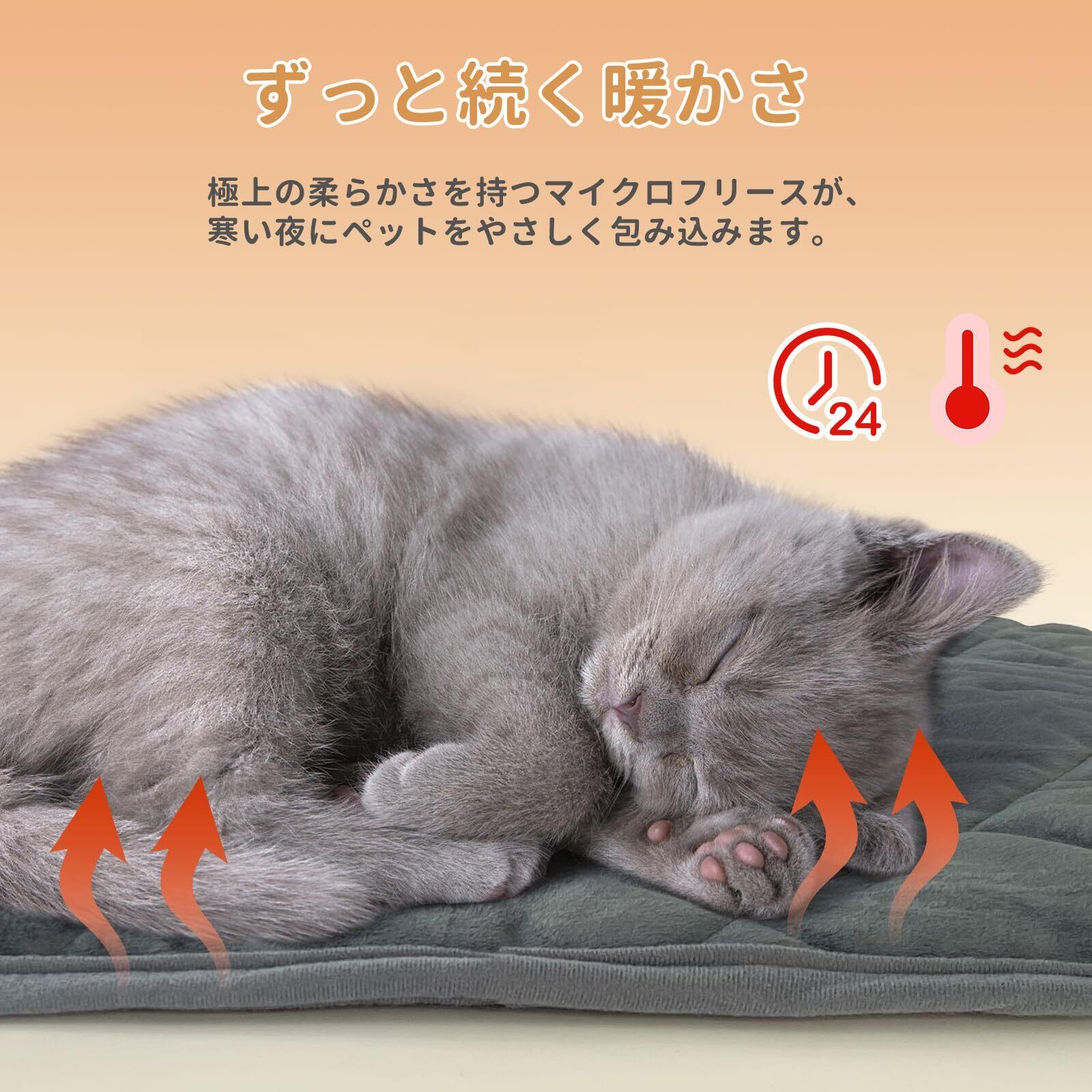 ペット用ホットマット 猫毛布 布団 55*40cm 体温で蓄熱 電気不用 ペット用ブランケット 物理的保温 犬ベッドマット 暖かい 睡眠マット 洗える ふわふわ 保温マット あったか 冬 寒さ対策 グレー