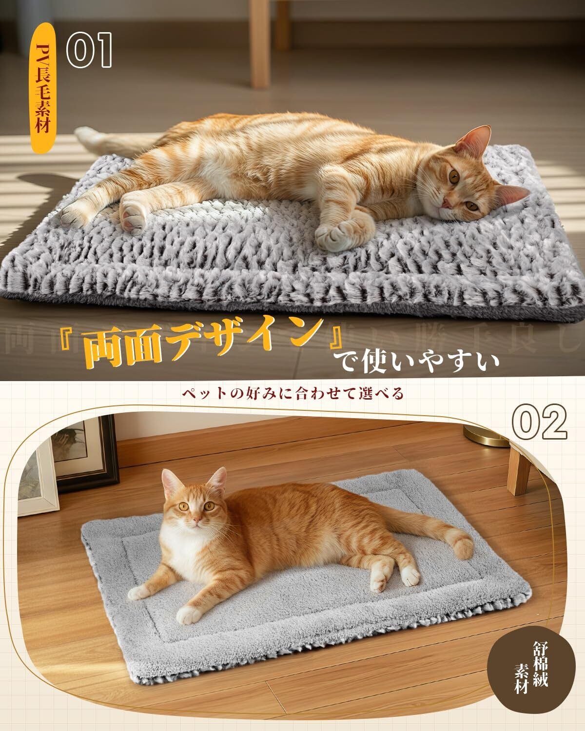 【静かで両面使える素材】内部は静音素材を使用しているため、ペットが動いてもサラサラと不快な音が立てず、安眠を妨げません。両面使用可能で、ふわふわのプラッシュ面は寒い日に、さらっとした滑らかな面は暖かい日や暑がりな子に最適です。