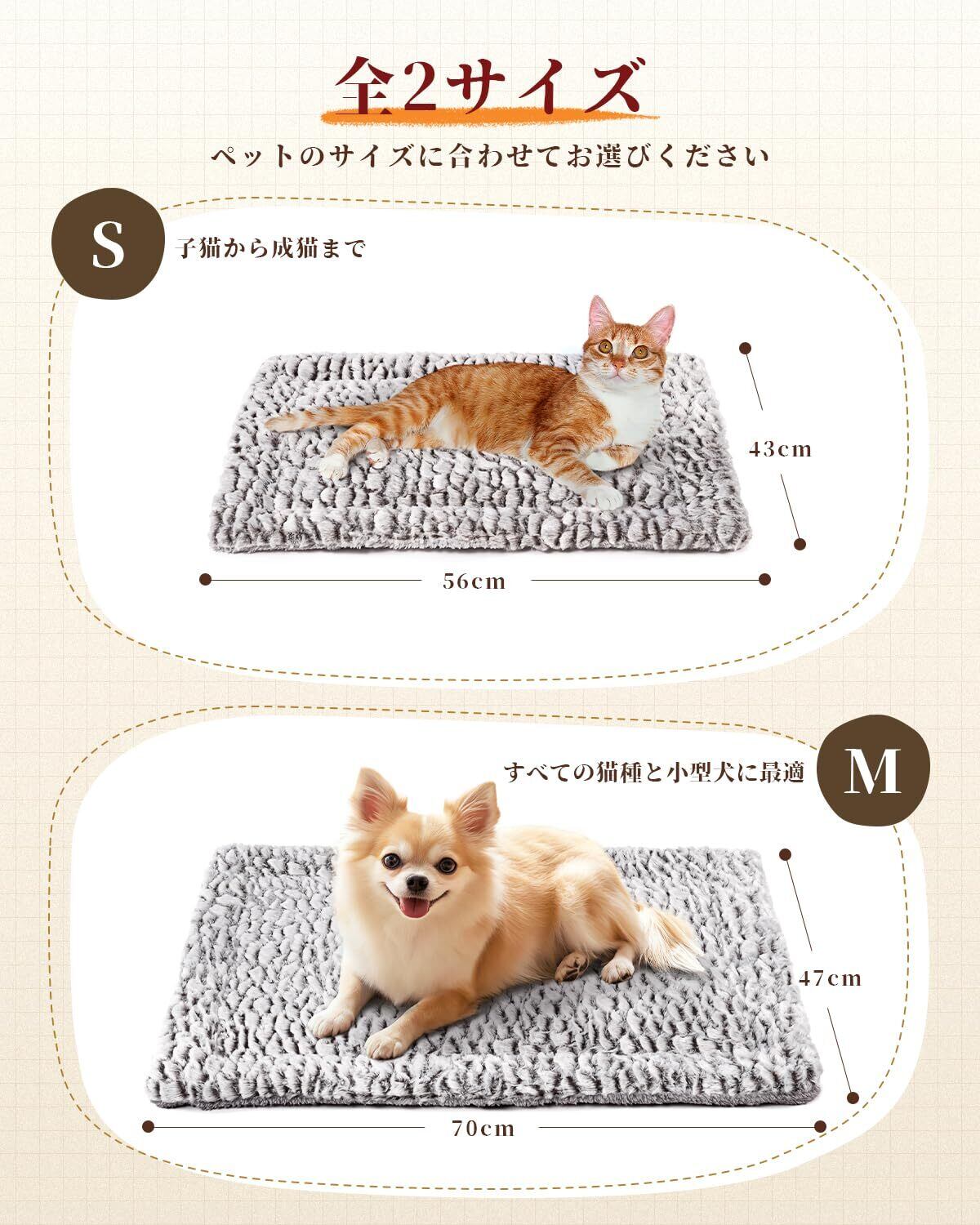 ペット用ホットカーペット電気不用 猫 ホットマット 体温で蓄熱 犬 あったかマット 寒さ対策 猫 犬用ヒーター 両面使用 ペットマット 冬グッズ (M:70x47cm)