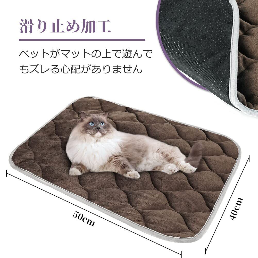 ホットマット ペット用 ベッド マット 猫 犬 マット 暖かい ペット用保温マット 洗える 物理的保温 体温で蓄熱 防寒 寒さ対策 ふわふわ あったか(ブラウン S:50*40cm)