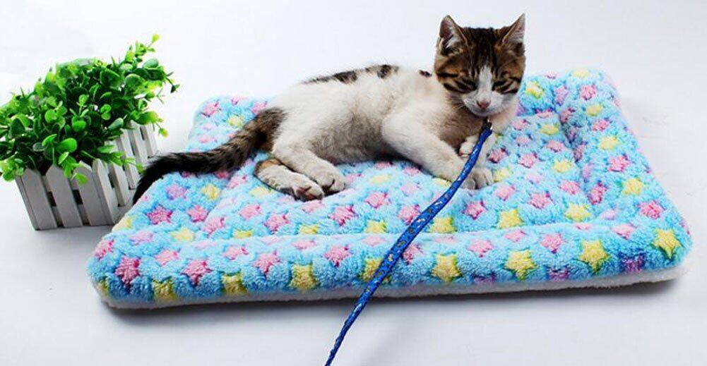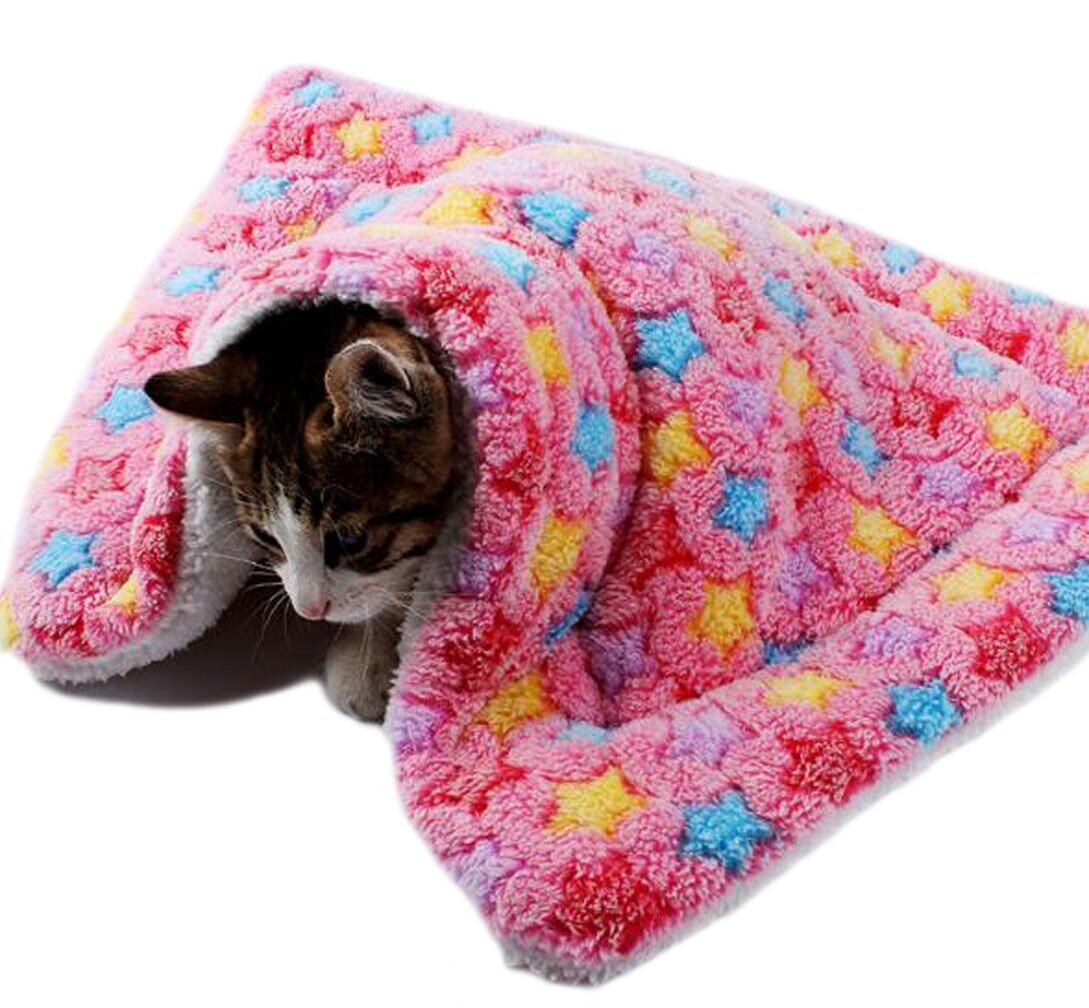 ふく福 星柄 暖かい ペット用ベッド マット クッション布団 可愛い ペット犬 猫 フリース ブランケット秋冬防寒 洗える ぐっすり眠る 快適 犬小屋/ケージ/お部屋/車内/玄関 クーラー用 (1個,色ランダム) (S:38*46cm)