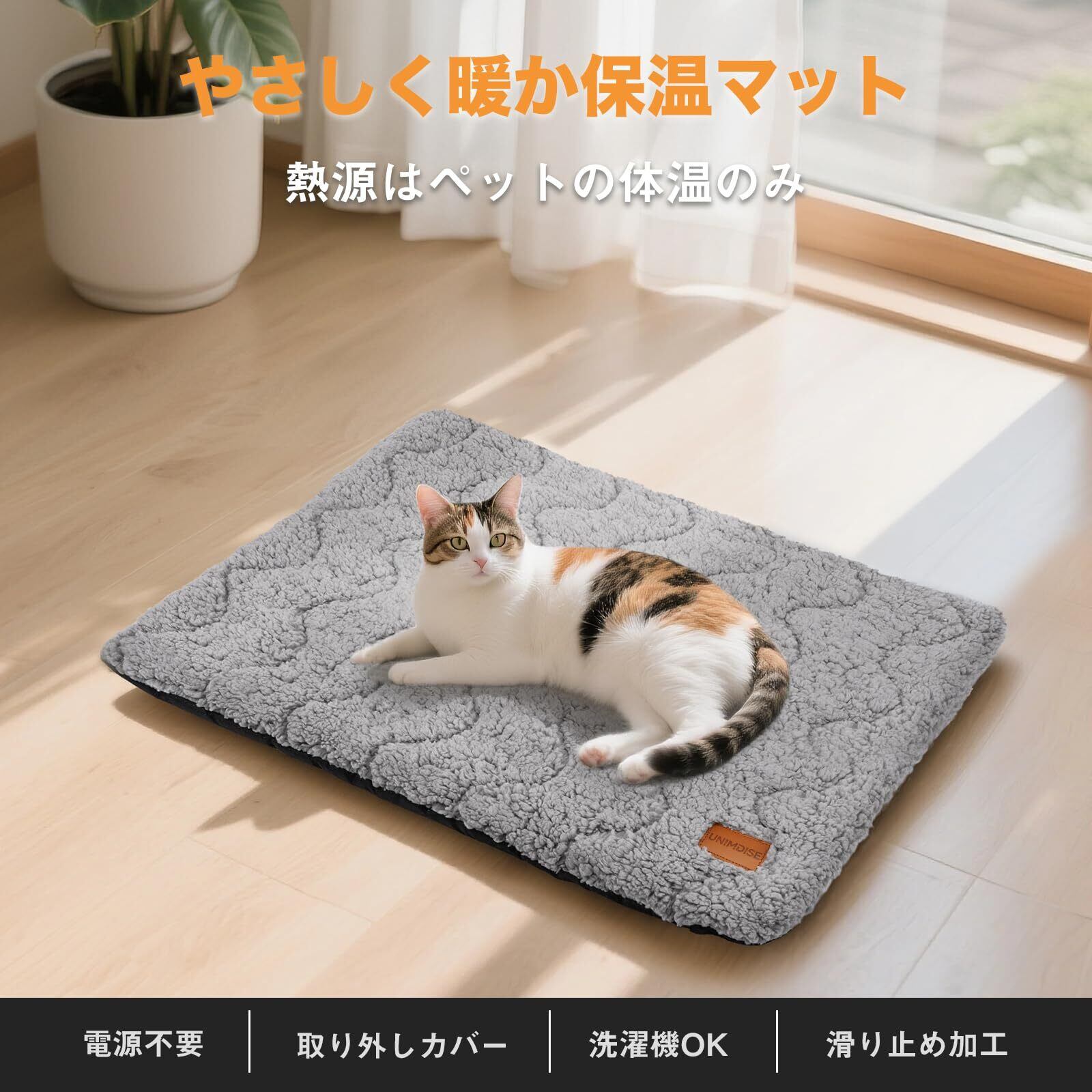 ペット用 保温マット あったかマット 冬用 電源不要 コードレス 犬 猫 マット 猫ベッドマット 暖かい 体温で蓄熱 防寒 洗える 滑り止め付き(60×45cm グレー)