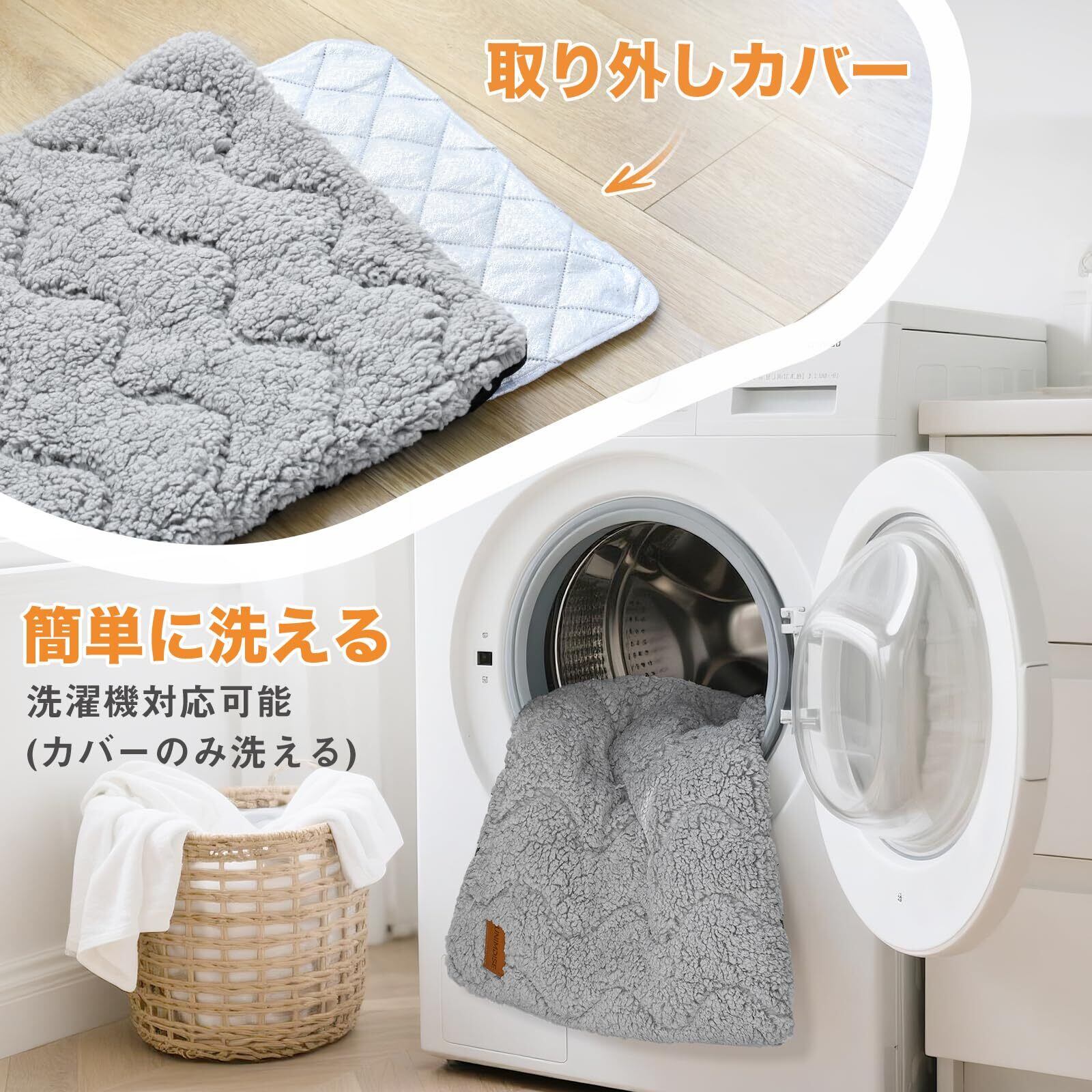 カバーは取り外し式で、洗濯機で丸洗い可能です。お部屋を清潔に保てます.Sサイズ:60×45cm;Mサイズ:75×48cm