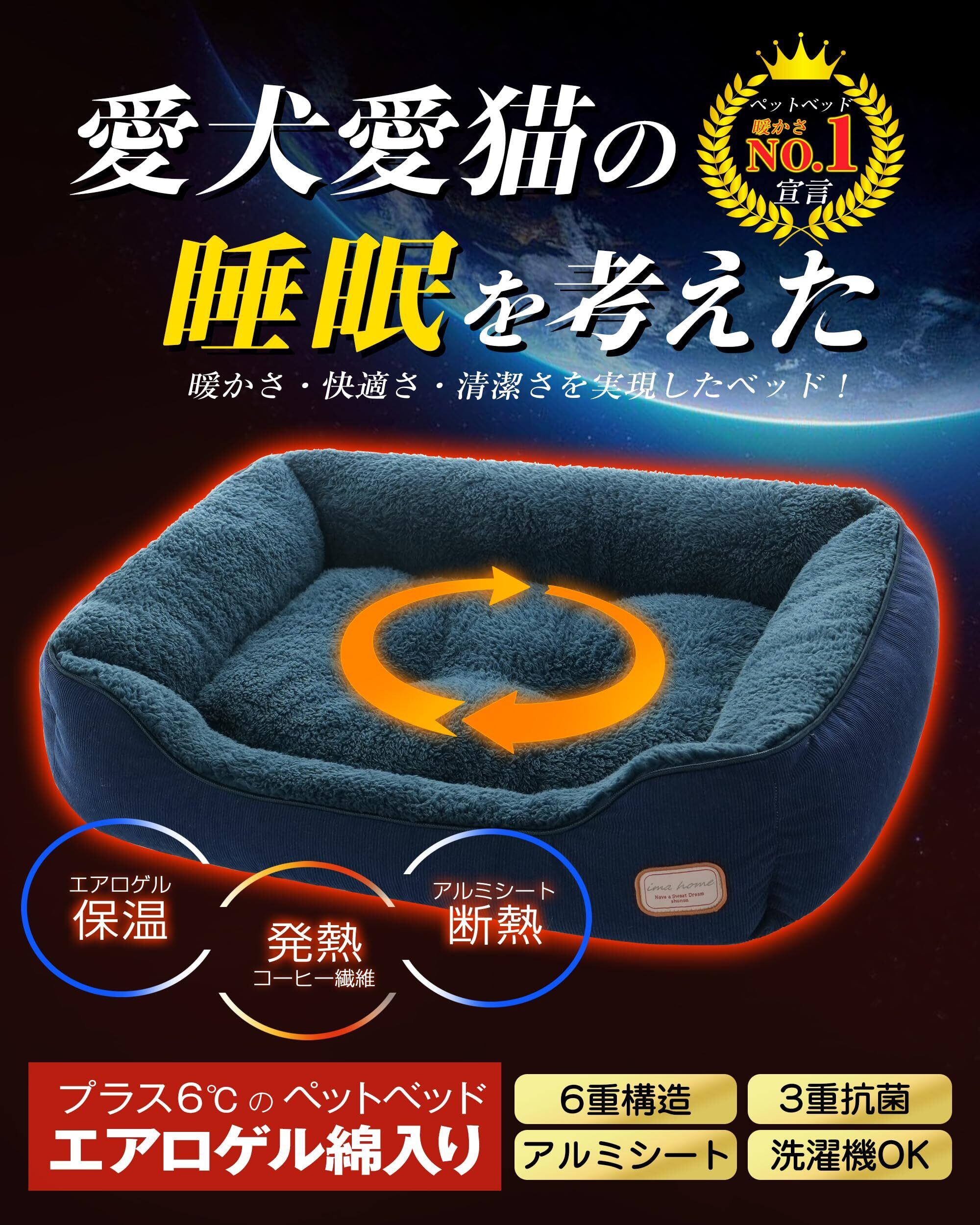 IMA HOME 【宇宙エアロゲル・6重保温】猫 犬 ベッド 冬 アルミシート入り ダブル断熱 洗える ふわふわ ペットベッド 犬 抗菌防臭防ダニ 吸湿発熱 W静電気防止 犬用ベッド 猫用ベッド ペットソファー 次世代炭素繊維 (S 31X40X13CM ネイビー)