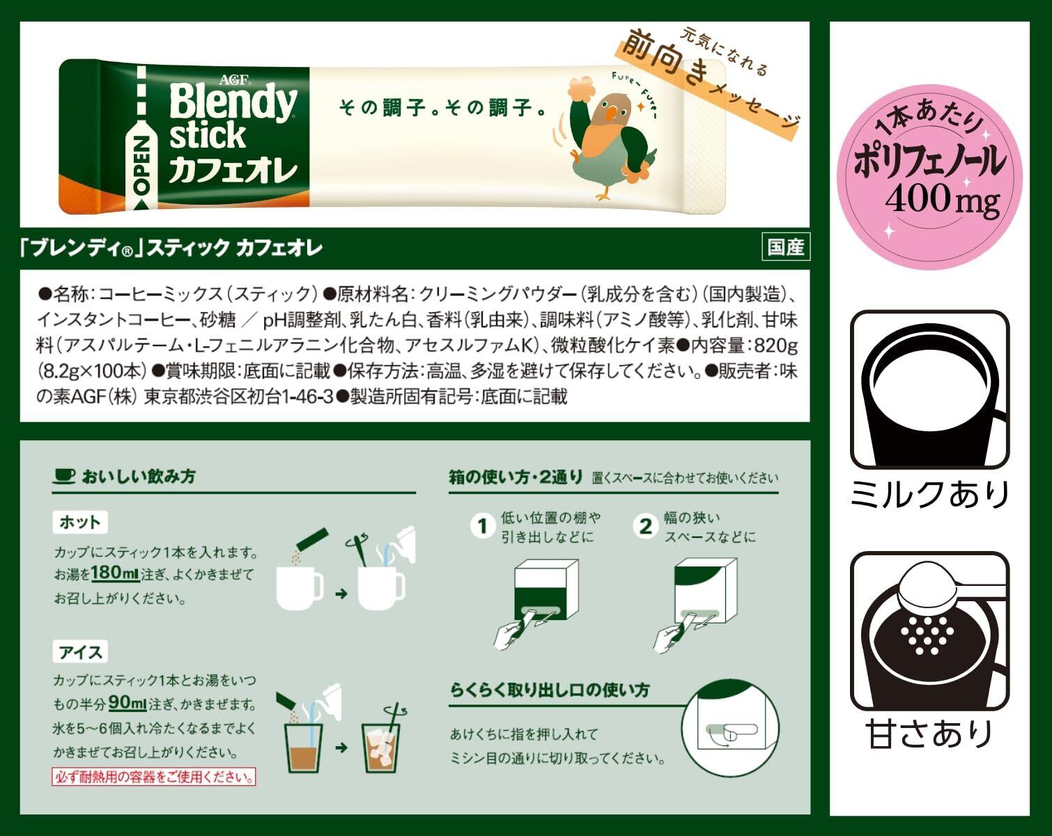 AGF ブレンディ スティック カフェオレ 100本 【 スティックコーヒー 】