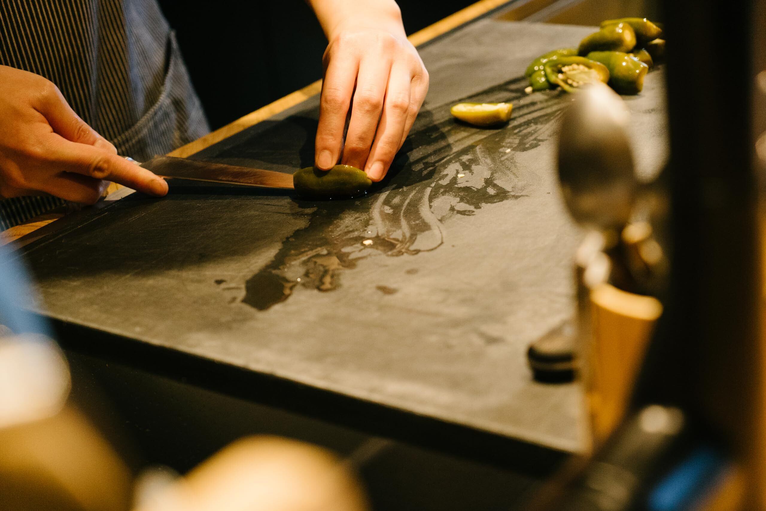 【長時間の調理でも疲れにくい】 柔らかい素材は手首や腕への負担を軽減し、長時間の仕込みや大量調理でも快適。高密度素材の硬いまな板に比べ、手の疲れが少ないとプロの現場でも高く評価されています。