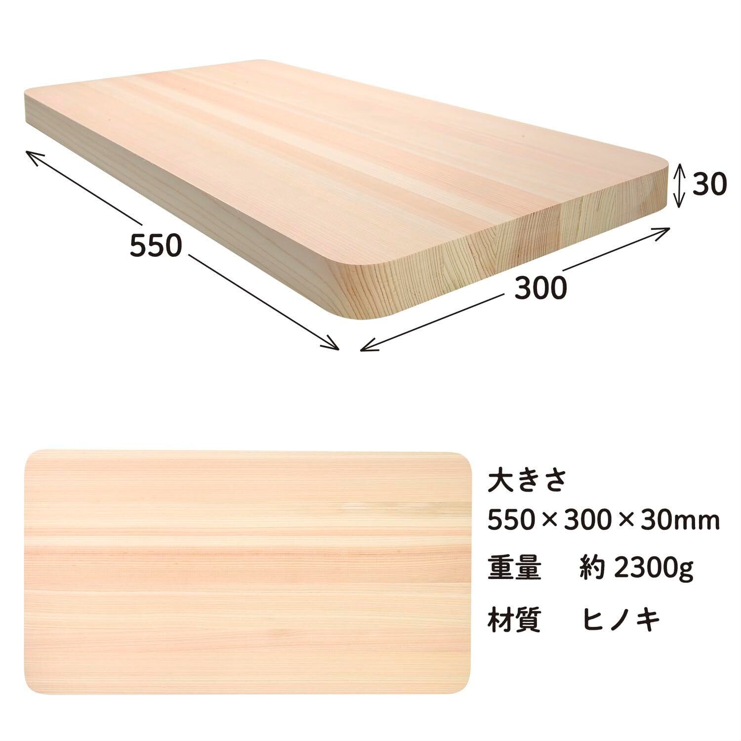 特徴:国産ヒノキの集成材を使用しておりますので、一枚板と比較し、反りにくくなっております。