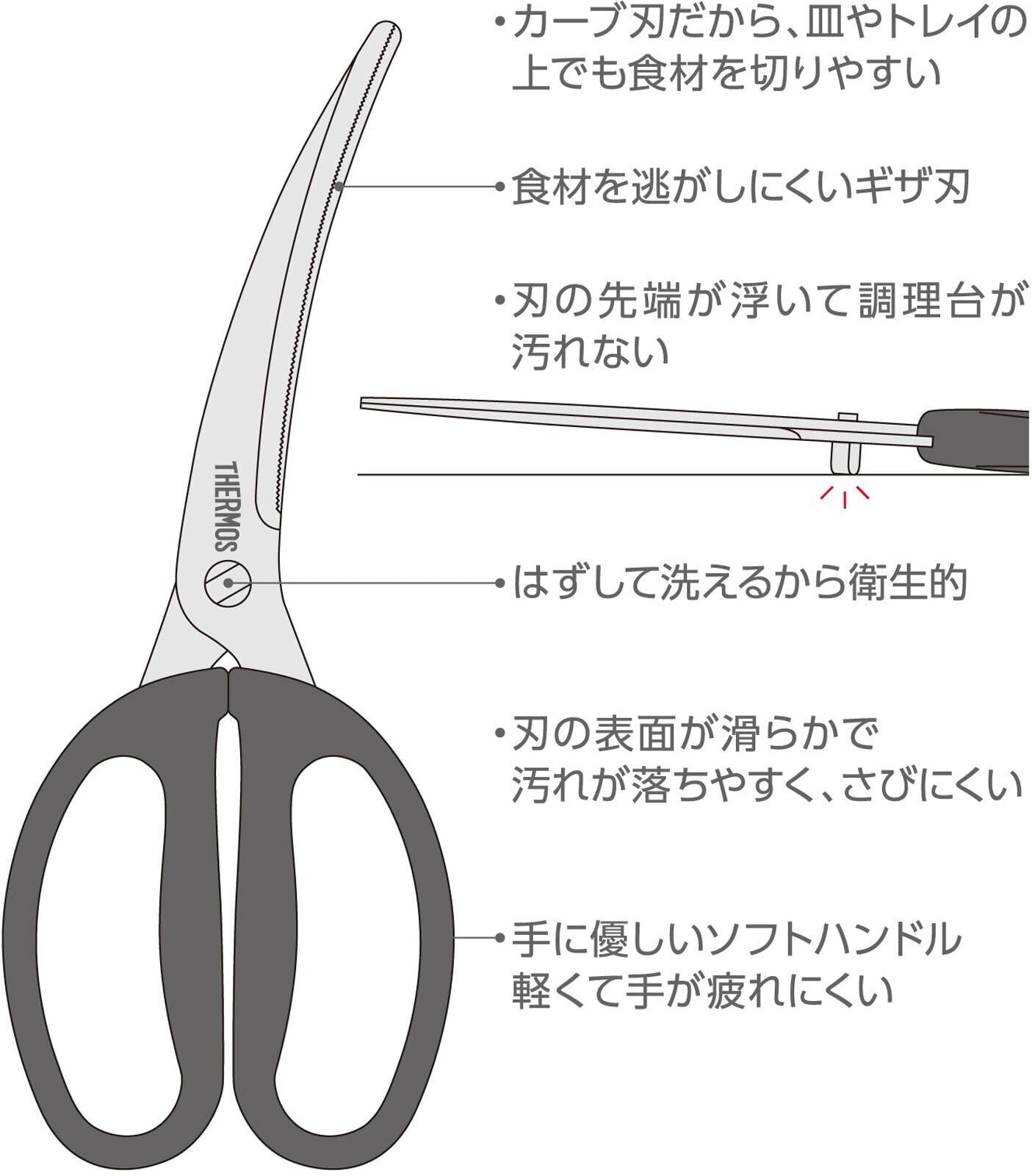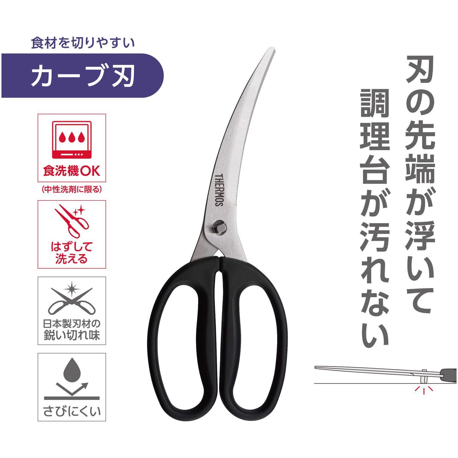 サーモス キッチンバサミ カーブ 刃 ブラック 分解式 食洗機対応 料理ばさみ 日本製刃材の鋭い切れ味 刃先が浮いて浮いて調理台が汚れない 汚れが落ちやすくさびにくい KK-HC001 BK
