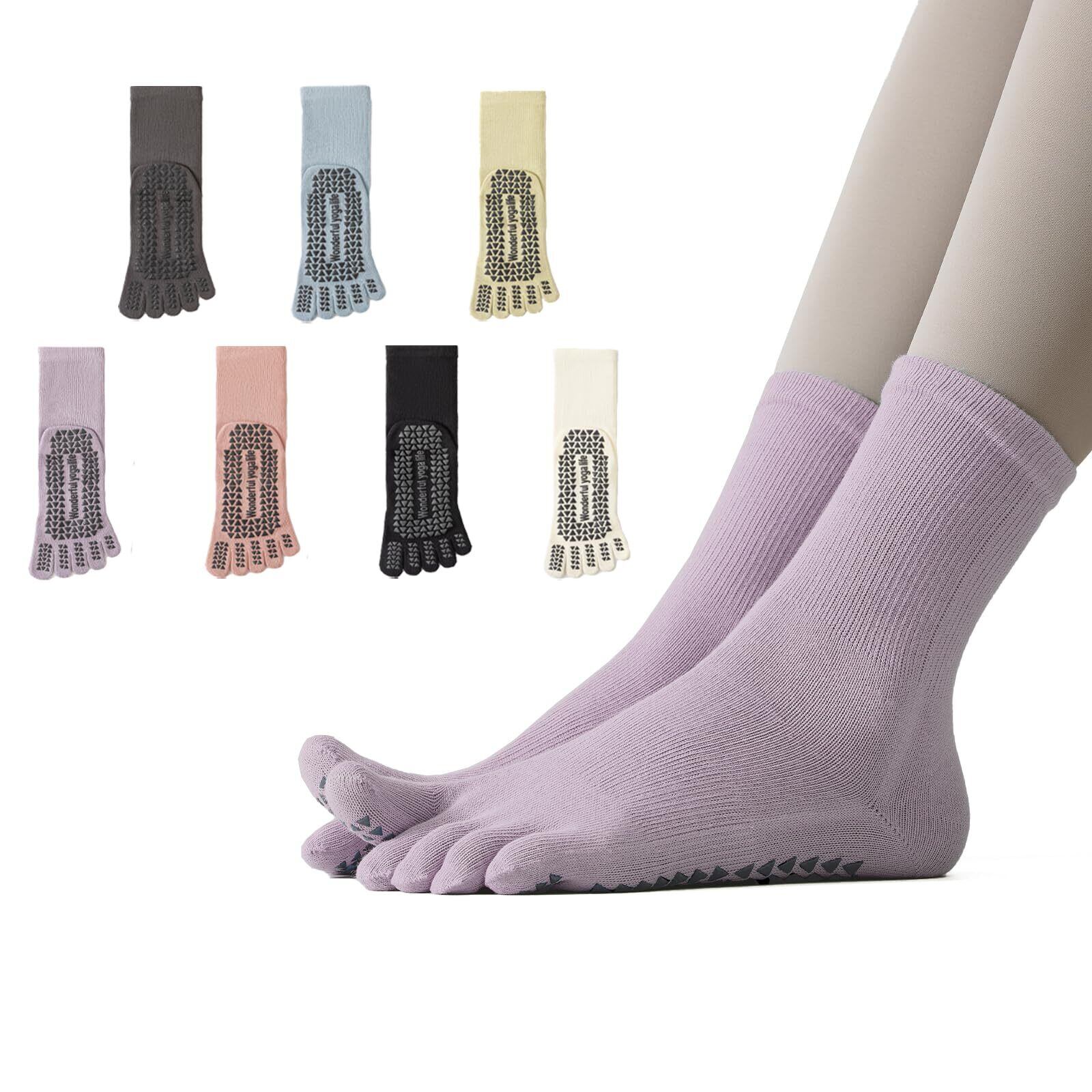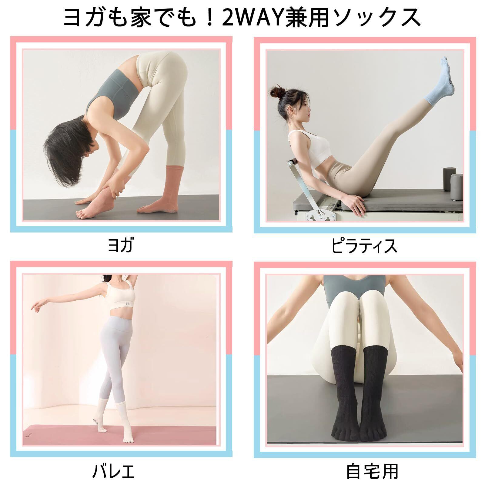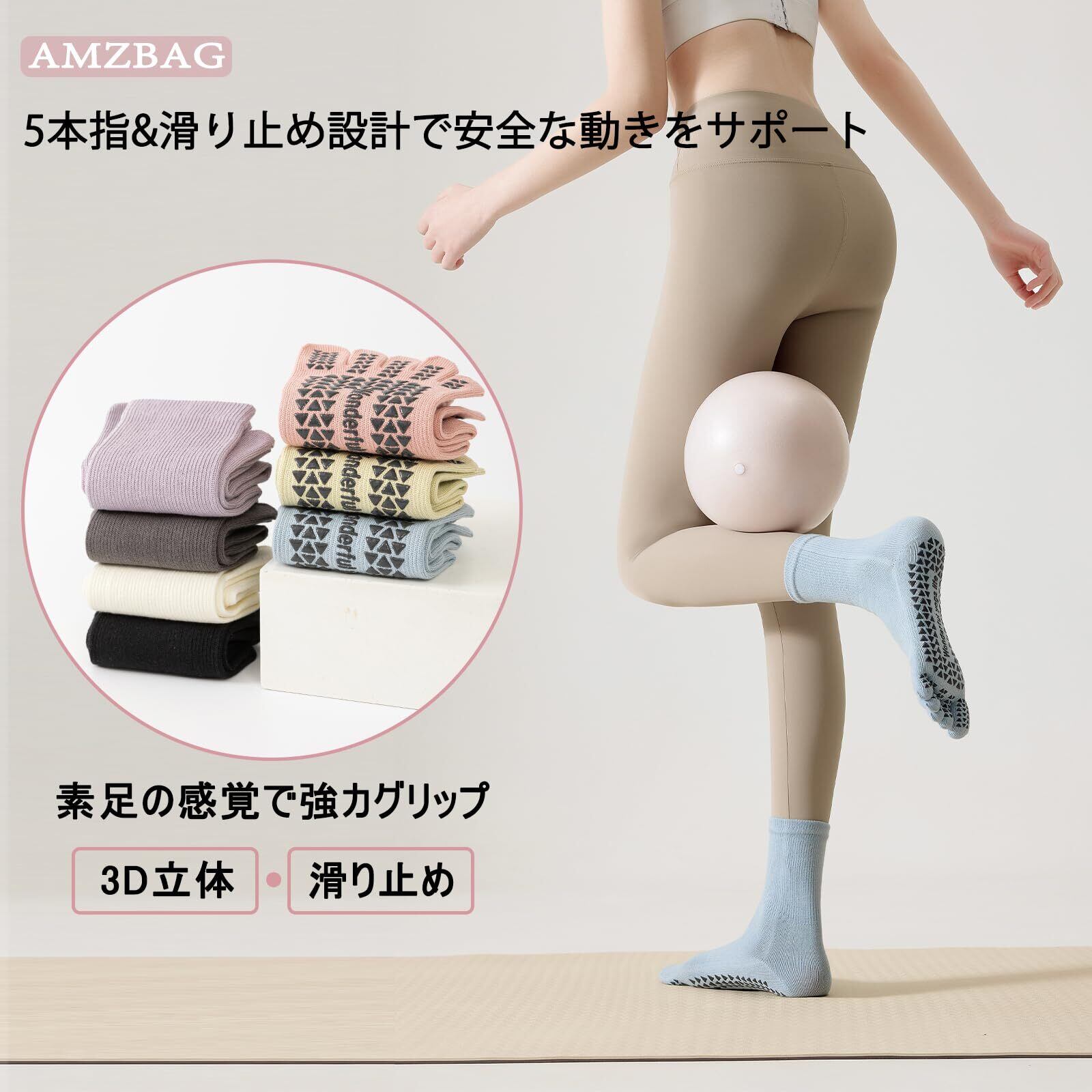 [Amzbag] ヨガソックス ピラティス 靴下【5本指・3D滑り止め・ズレない3Dヒール】 中丈のピラティスソックス ヨガ靴下 グリップソックス pilates socks 防寒対策 通気性 抗菌防臭 速乾 色あせない 室内運動/自宅用 ダンス バレエ ジム