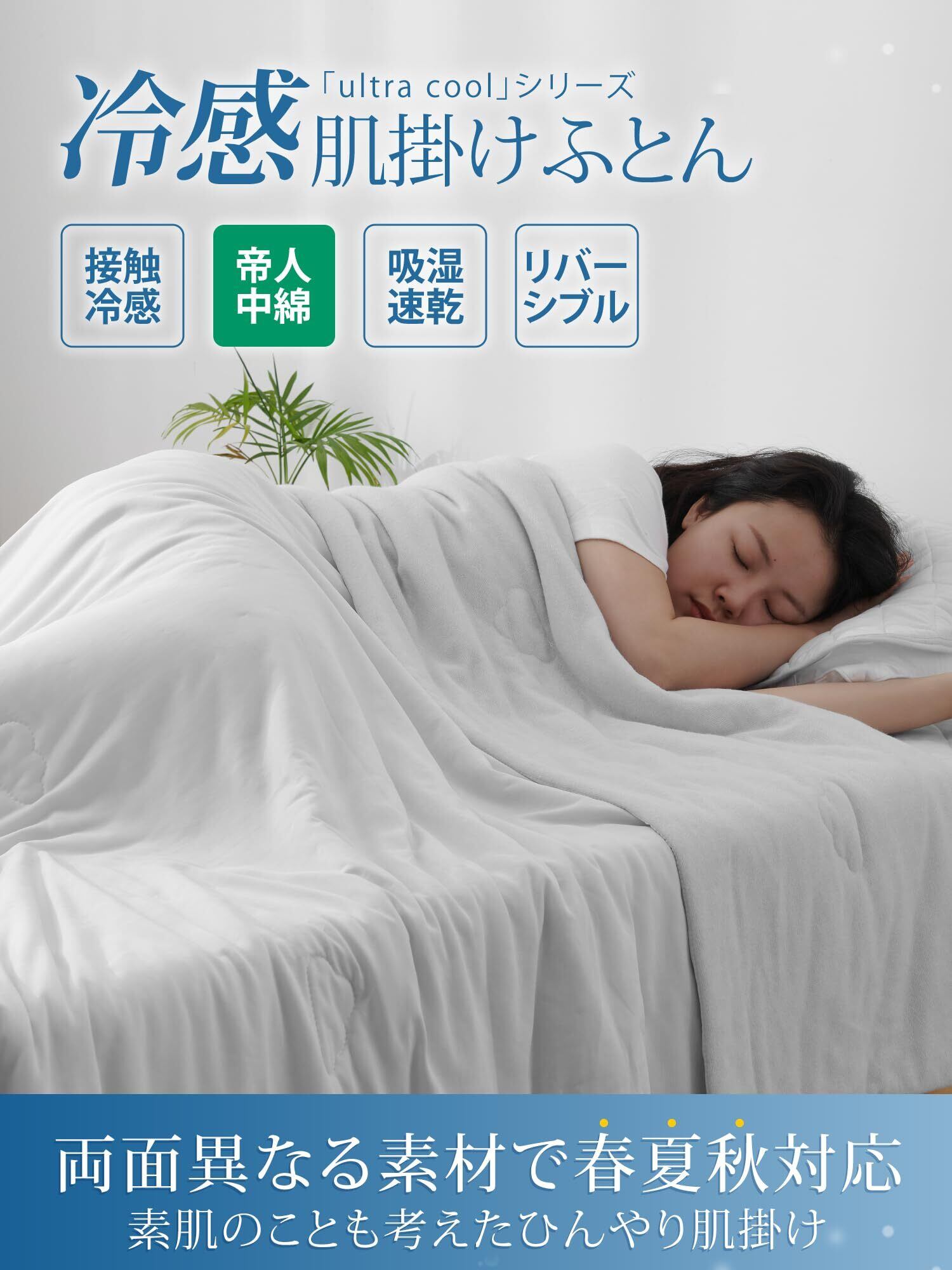 <リバーシブル仕様で長く使える>:中綿入りのでほどよい厚みがあります。ちょっと寒い季節~暑い季節もコレ1枚!ひんやり接触冷感面&タオル地のリバーシブルで春~夏~秋まで快適に使えます。