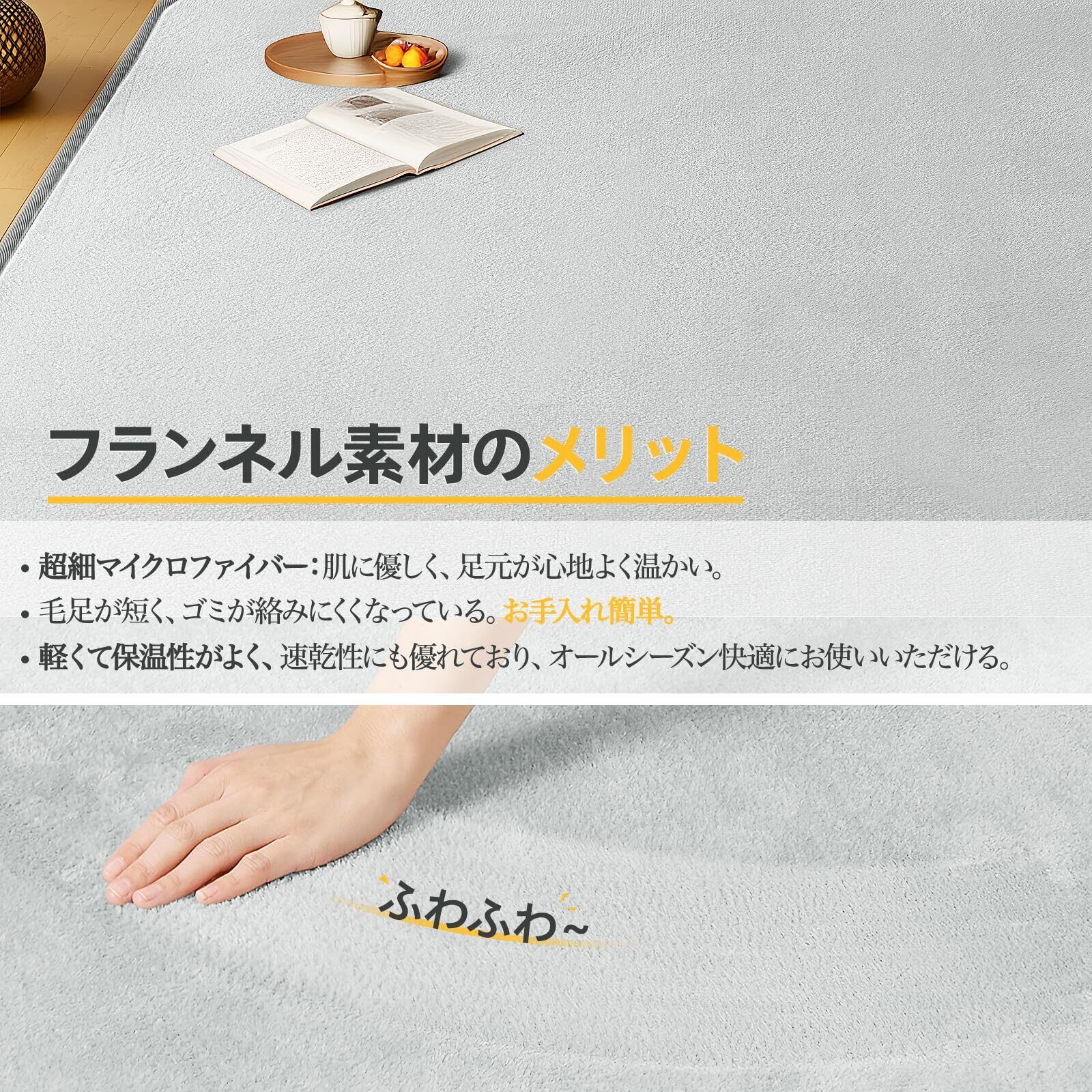 【フランネルラグ-優れた肌触り】極細繊維で作られたフランネル素材のラグマットはソフトでしなやか、滑らかな感触を実現します。肌ざわり良いし、短毛タイプのラグマットなので、ネコや犬の毛が付いても、掃除機で簡単に取れます。