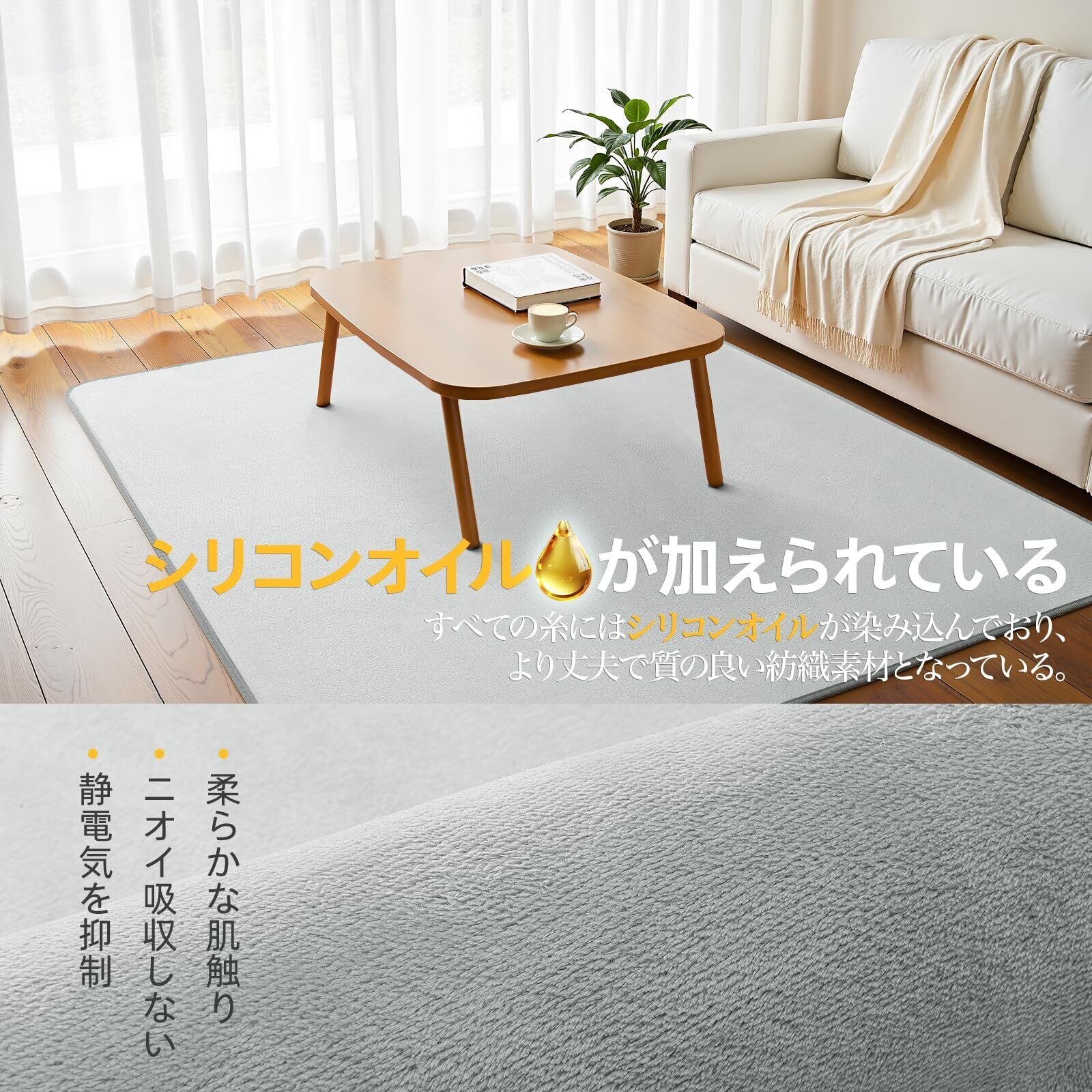 ラグ カーペット ラグマット 絨毯 滑り止め付き 防音 洗えるラグ 防ダニ 防臭 軽量設計 オールシーズン快適に使用 素肌にやさしい 北欧風 おしゃれ ホットカーペット対応 床暖房対応 厚手 抗菌 床保護 転倒を防ぐ 1.5畳135×185cm ライトグレー