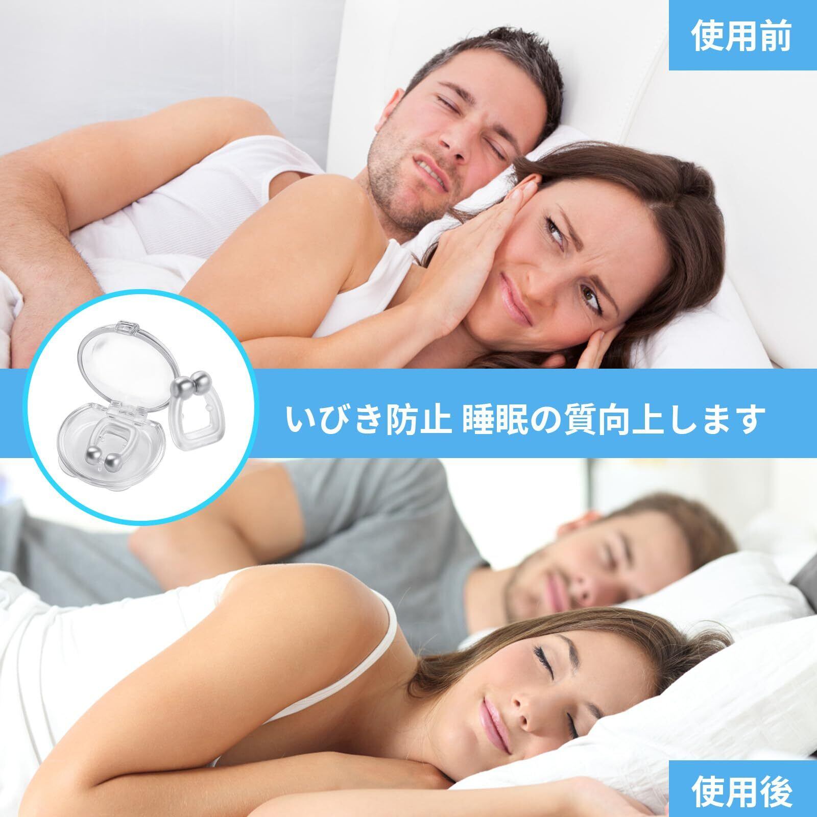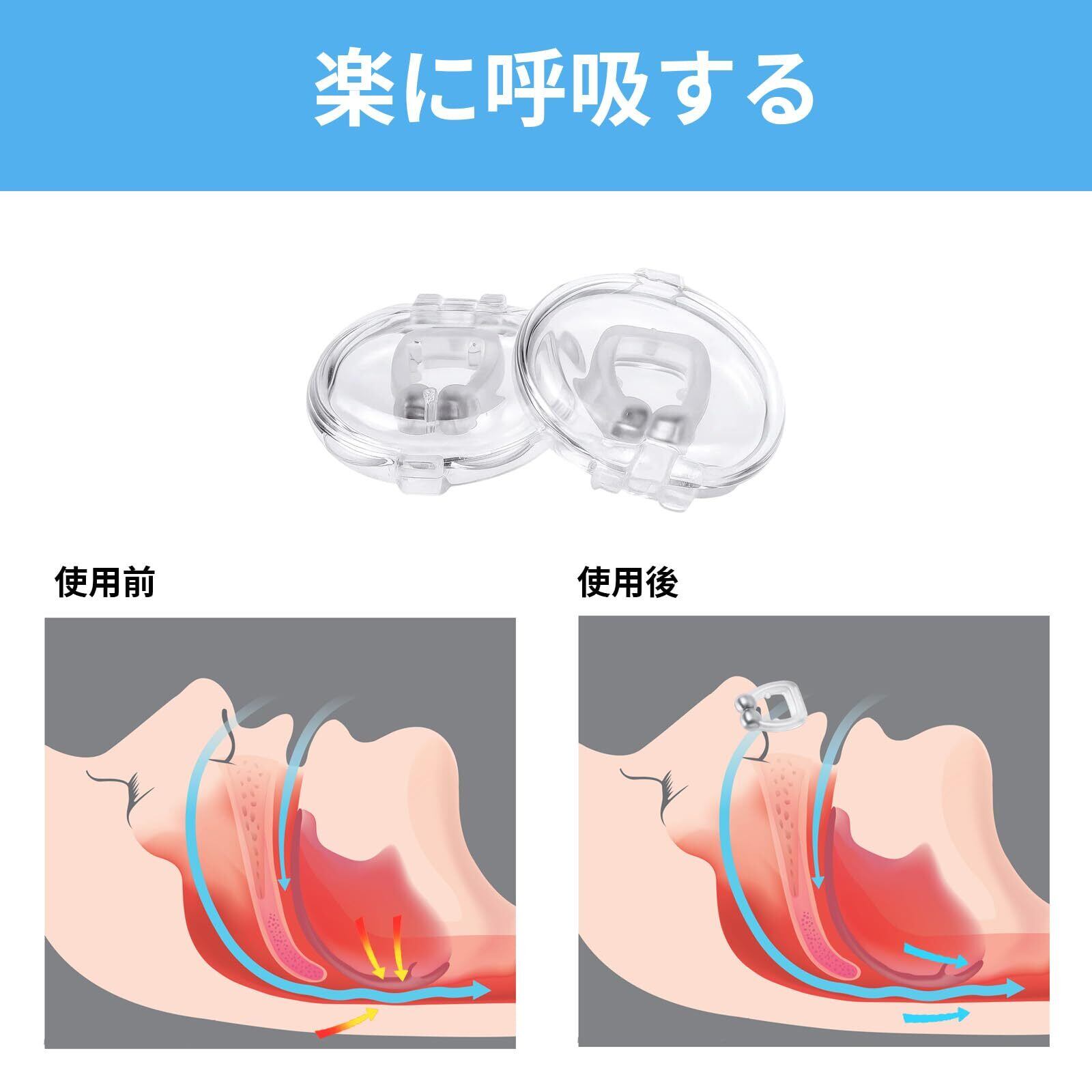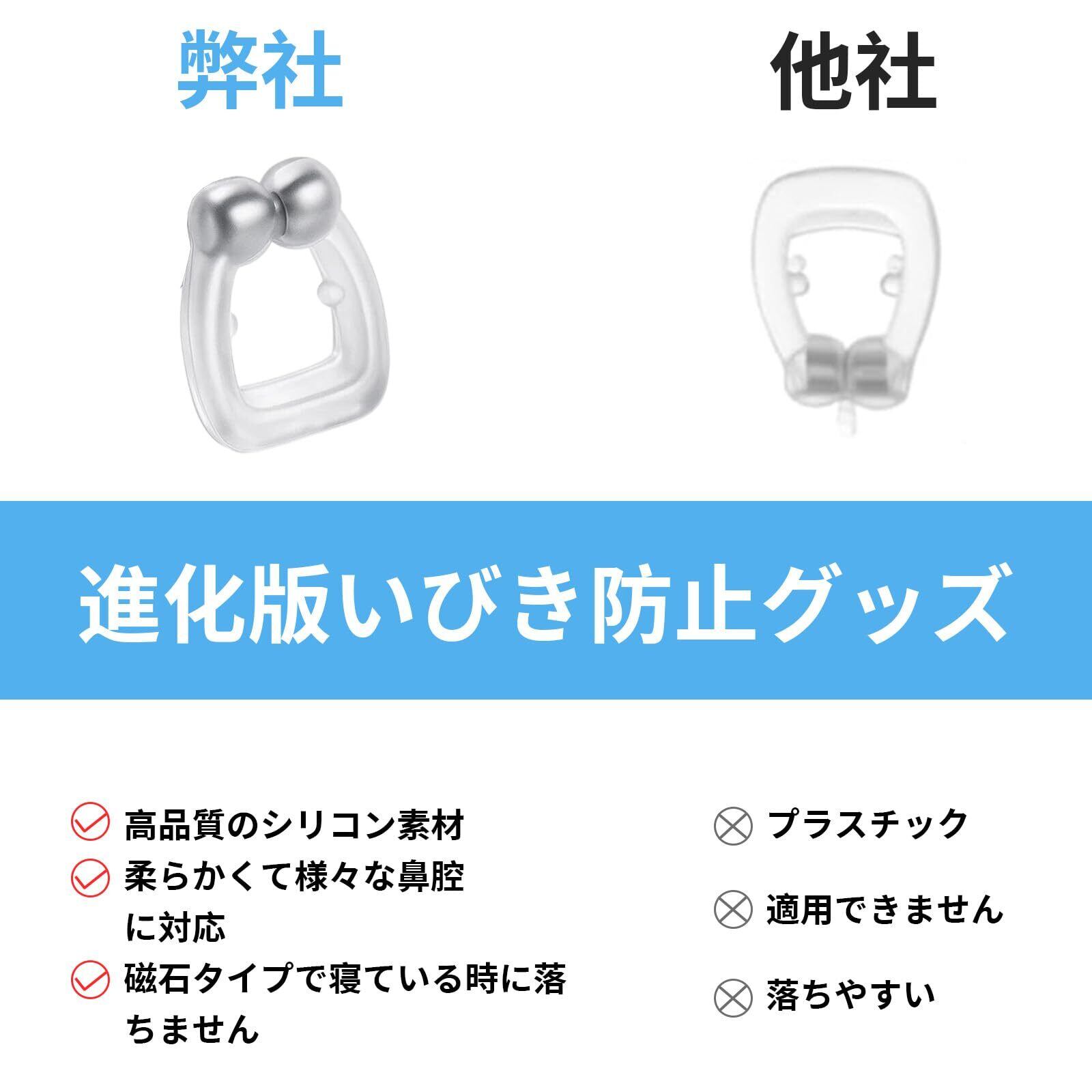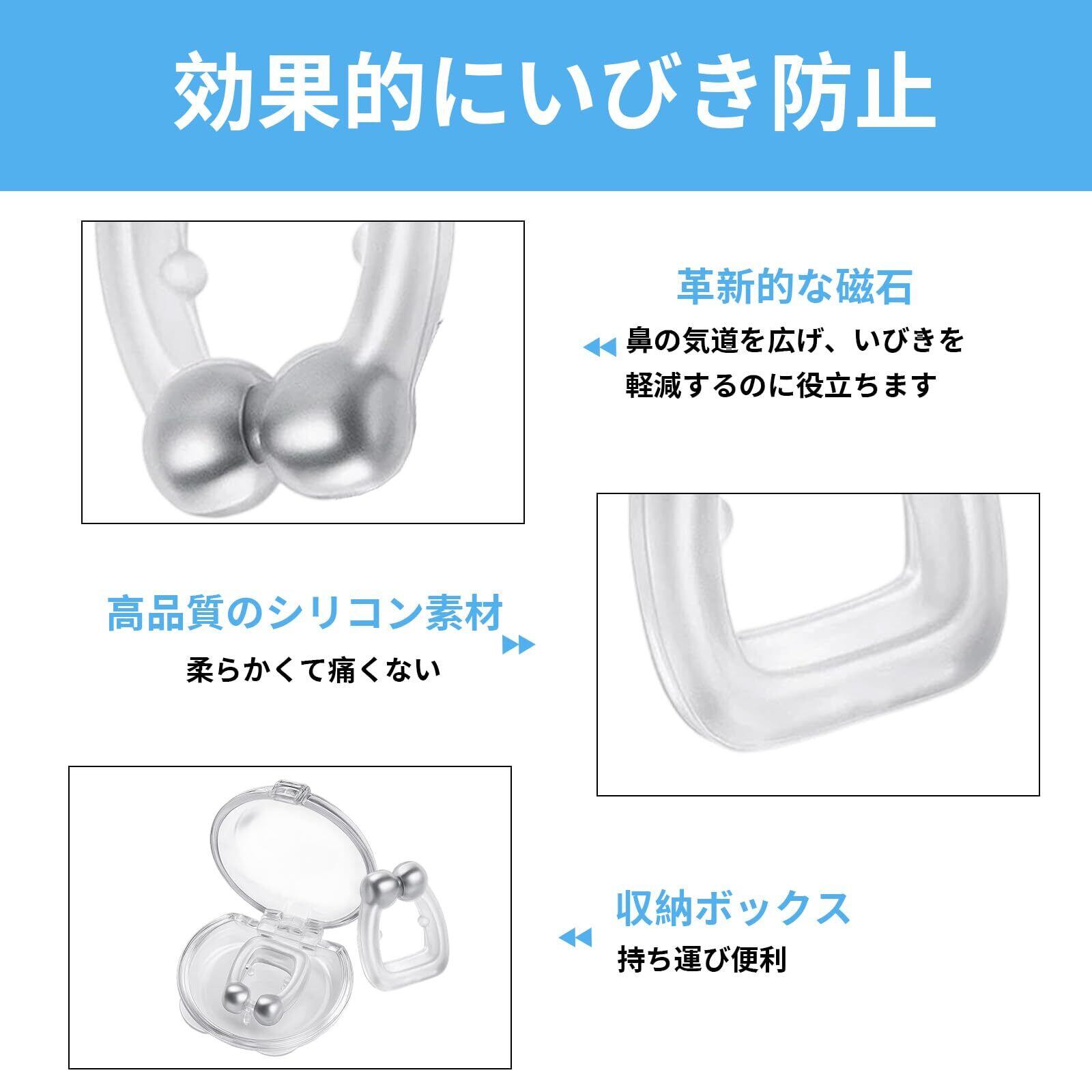 【いびき防止技術】 いびき防止グッズ高品質シリコン素材で肌に優しく、痛みなく長時間装着可能; 磁性により安定したフィット感を実現、いびき防止グッズいびき防止と同時に鼻づまり解消にも効果的。