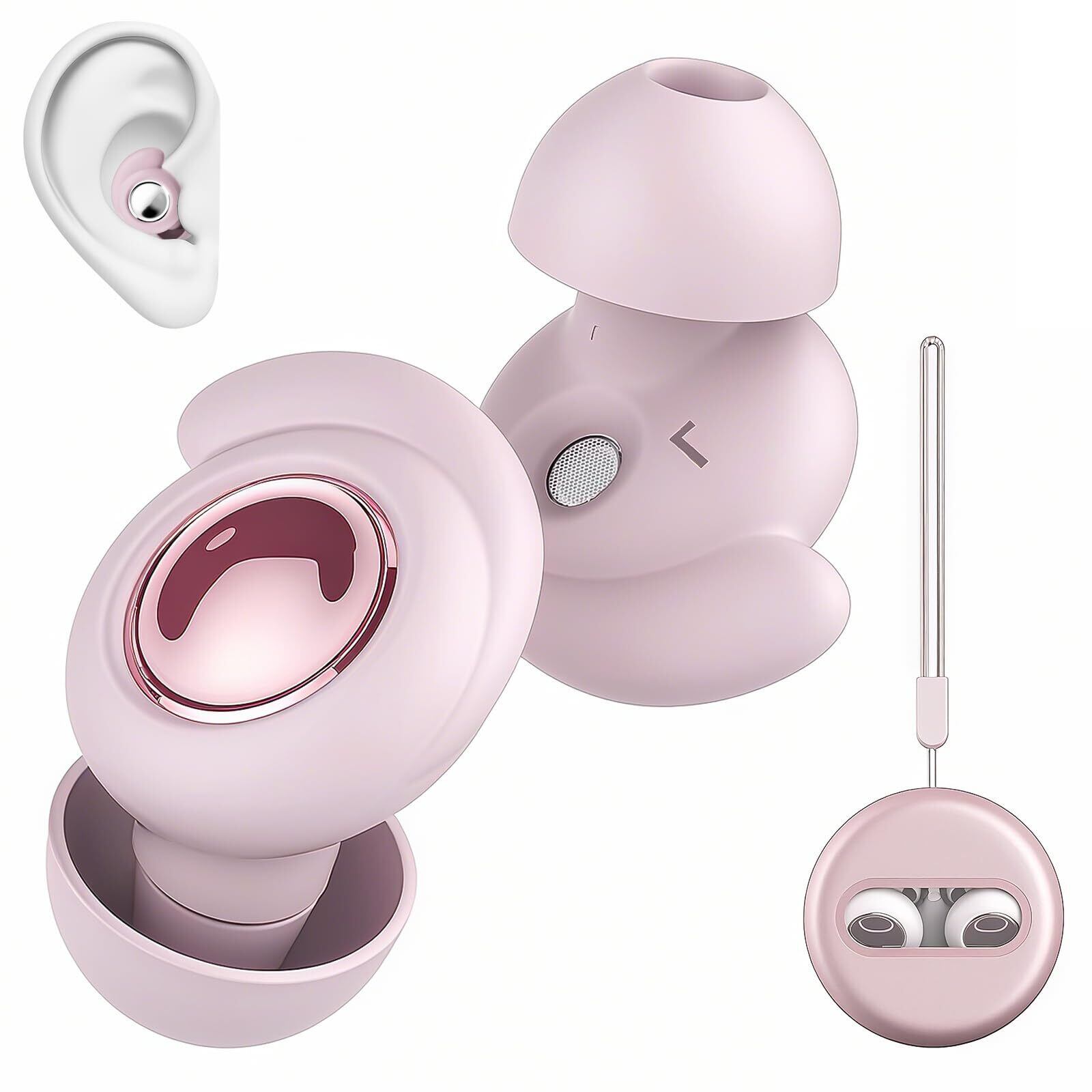 ノイズキャンセリング イヤープラグ, 55dB 遮音, アラーム対応, 水洗い可能, 3サイズ耳栓付き, 収納ケース付き, 睡眠/勉強/仕事/ライブ/旅行/機内用 (ピンク, S,M,L)
