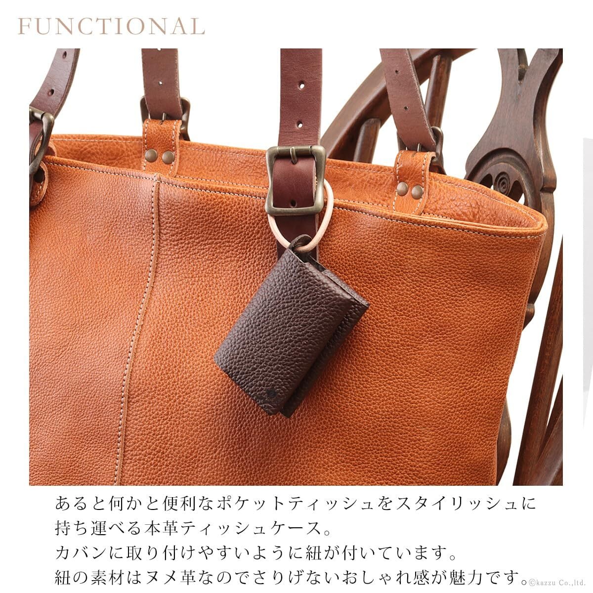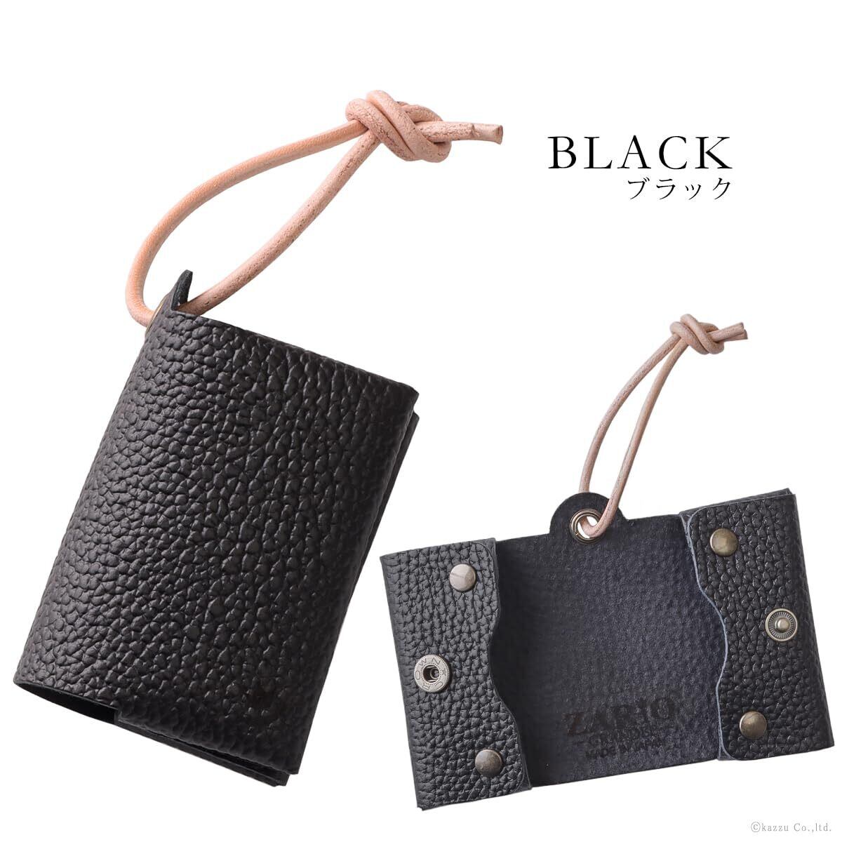 [ザリオグランデ] ティッシュカバー 本革 レザー 革紐付き 二つ折り コンパクトサイズ 日本製 【ZAG-206T】 (ブラック)