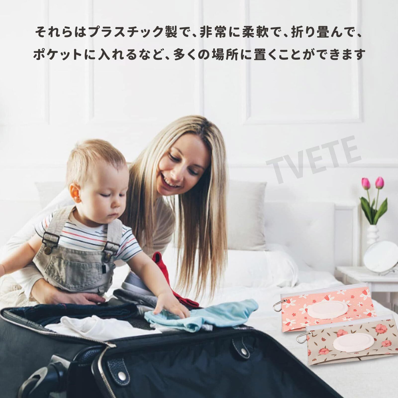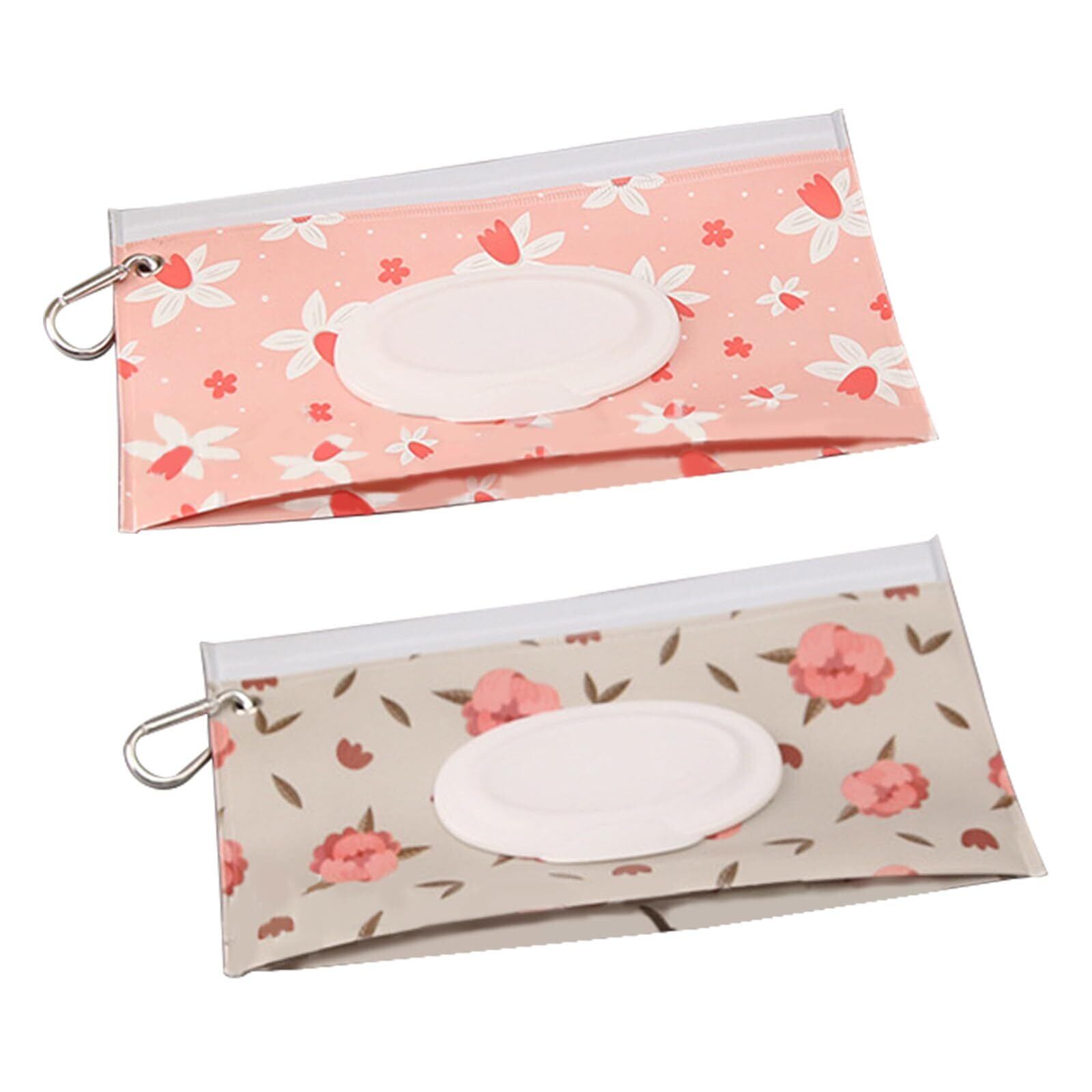 ウェットティッシュ ケース 持ち運び ウェットティッシュ ポーチ 【2個入り】 花柄 カラビナ付き 蓋付き フリップトップ 持ち運び お尻拭きポーチ 汗拭きシート ケース おしりふきポーチ ポータブル