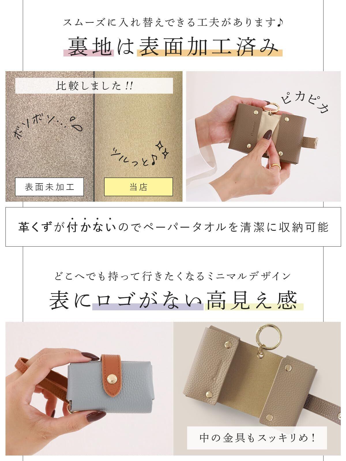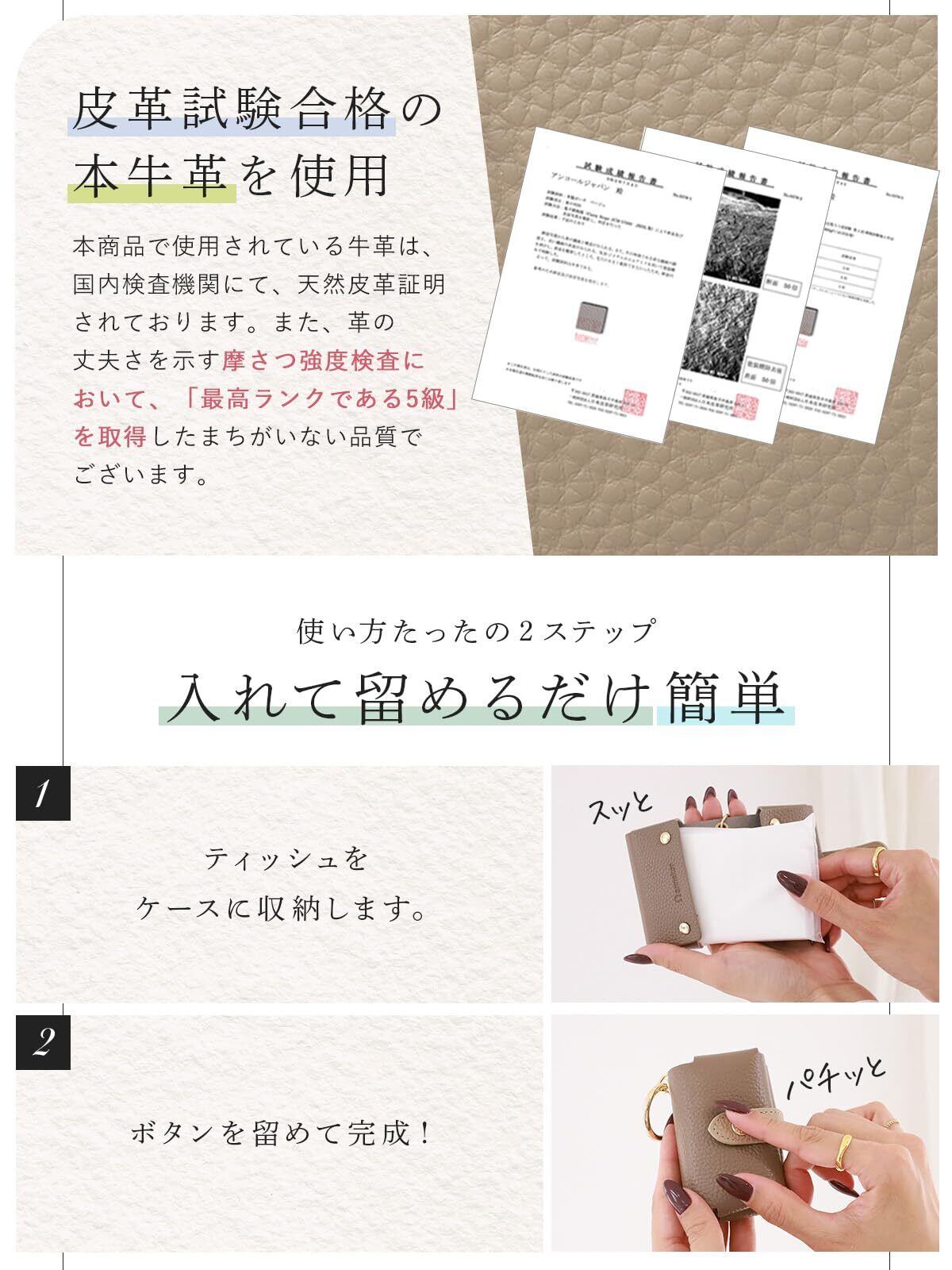 【高級本革のポケットティッシュケース】 手にひらに収まるミニマルサイズで、ブランド品にも使用される厳選本革で高級感のあるポケットティッシュケースです。
