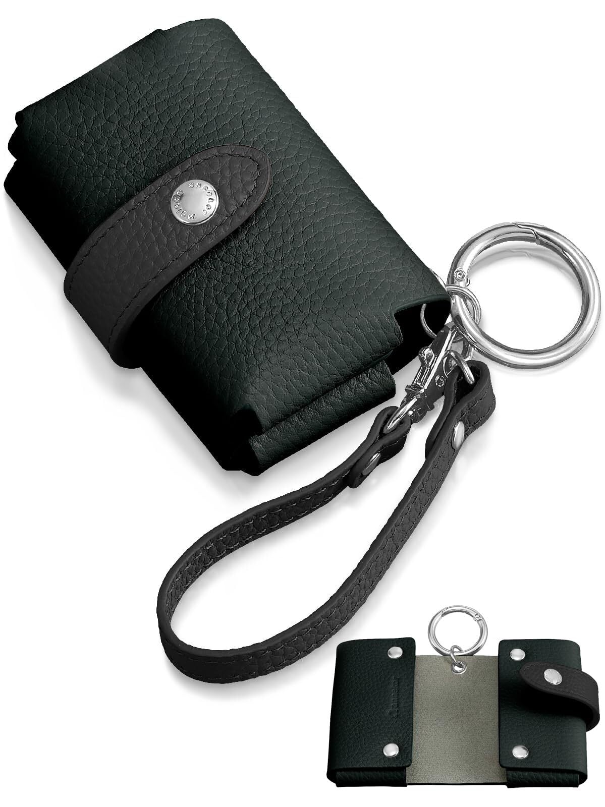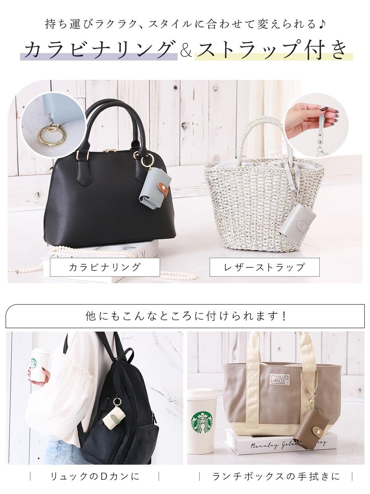 【便利なカナビナ&ストラップ付き】 付属のカナビナと本革ストラップでバッグやベルトに装着可能。使いやすく、外出時の携帯性も抜群です。