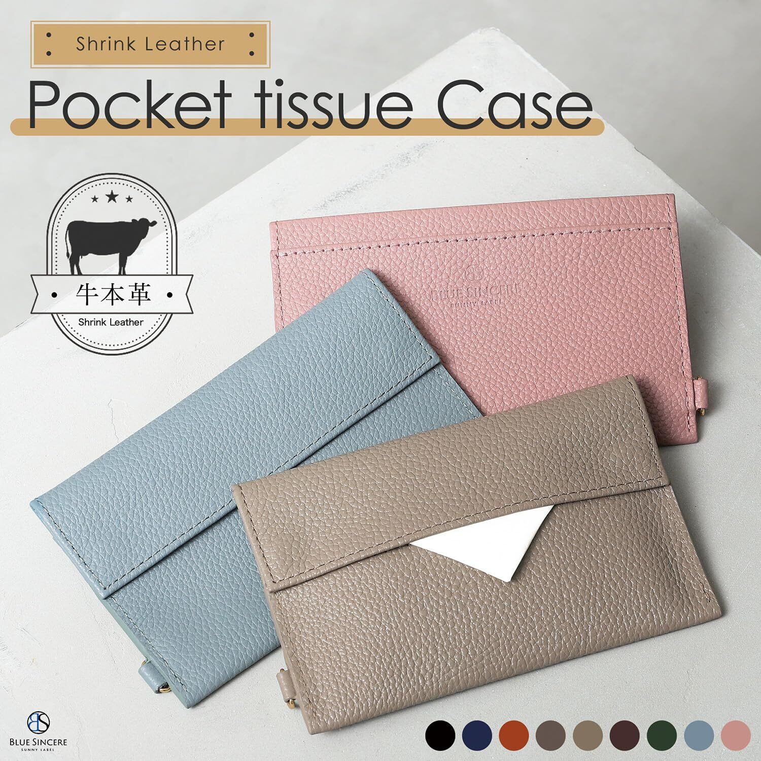 [BLUE SINCERE] ポケットティッシュケース 本革 2つ収納 ポーチ 持ち運び ポケットティッシュ カバー ちり紙 シンプル カジュアル レディース メンズ / TSC1