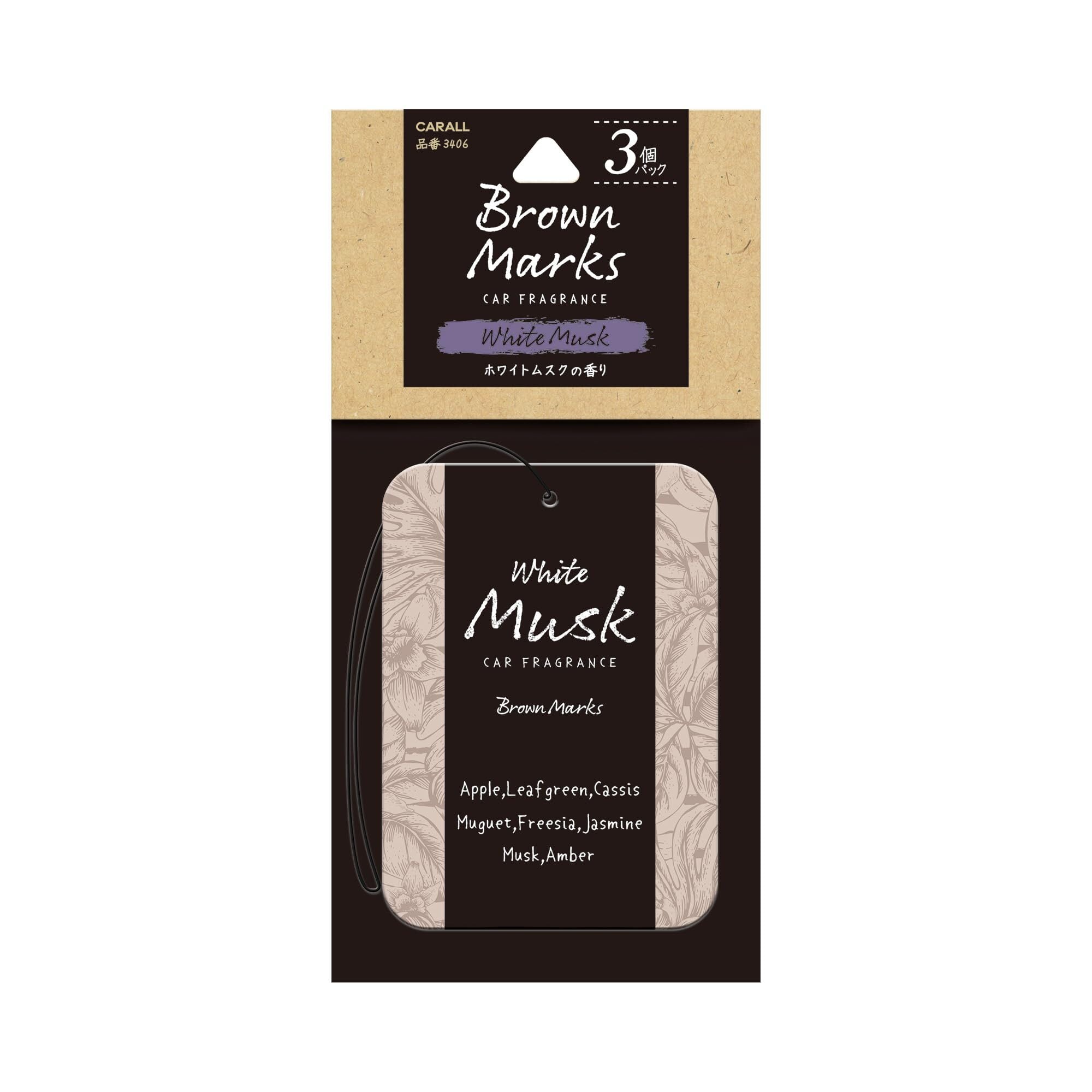 CARALL(カーオール) 晴香堂 車用 芳香剤 ブラウンマークス プレート 3個パック ホワイトムスク 12gx3個 3406