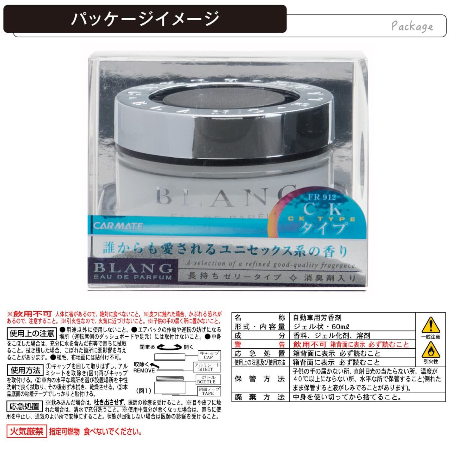 カーメイト(Carmate) 車用 消臭 芳香剤 【 CKタイプ 】 ブラング ゲル こぼれにくいゼリータイプ ドリンクホルダー ダッシュボード 置き型 【ラストにはアンバー ムスク が優しく包み込む全体的に爽快感を与える香り】 ホワイト 60ml FR912