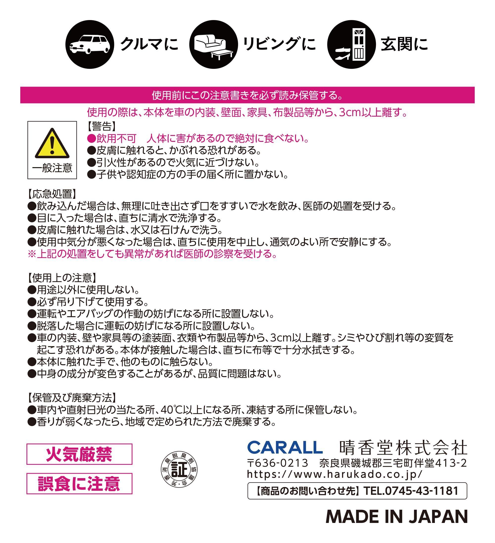 悪臭を感じにくくする香料 消臭アロマ と植物消臭成分を配合。香りと消臭効果で、車内を清らかな空間に。