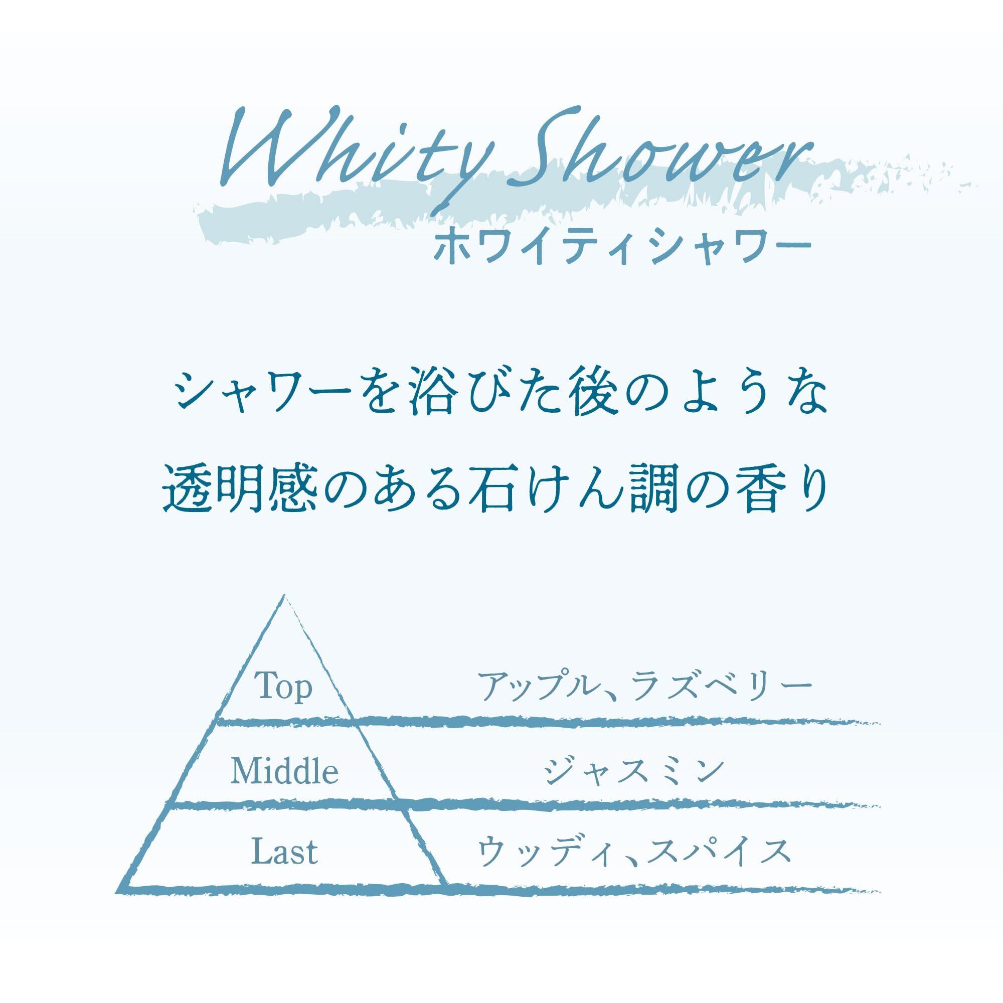 ホワイティシャワー:シャワーを浴びた後のような透明感のある石けん調の香り