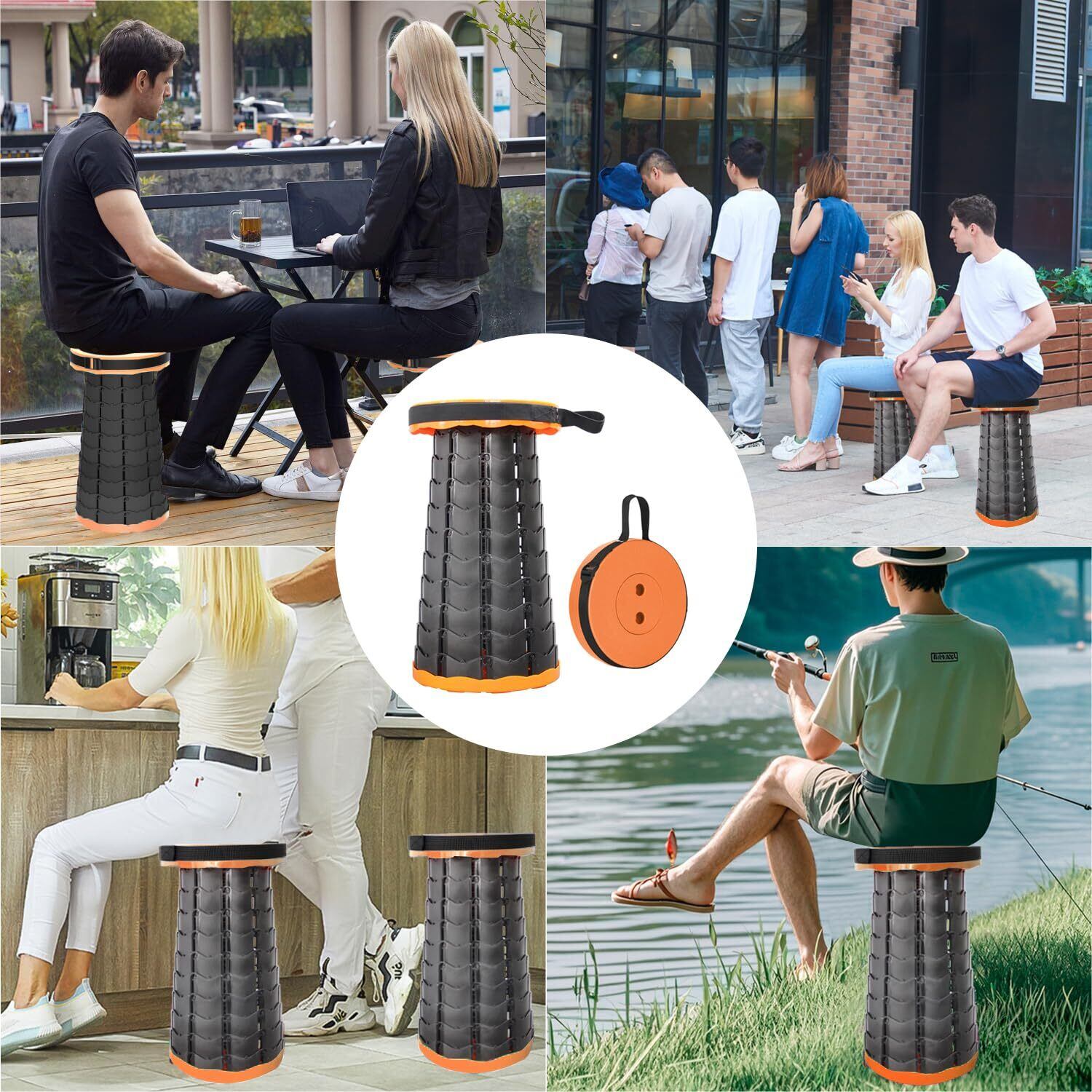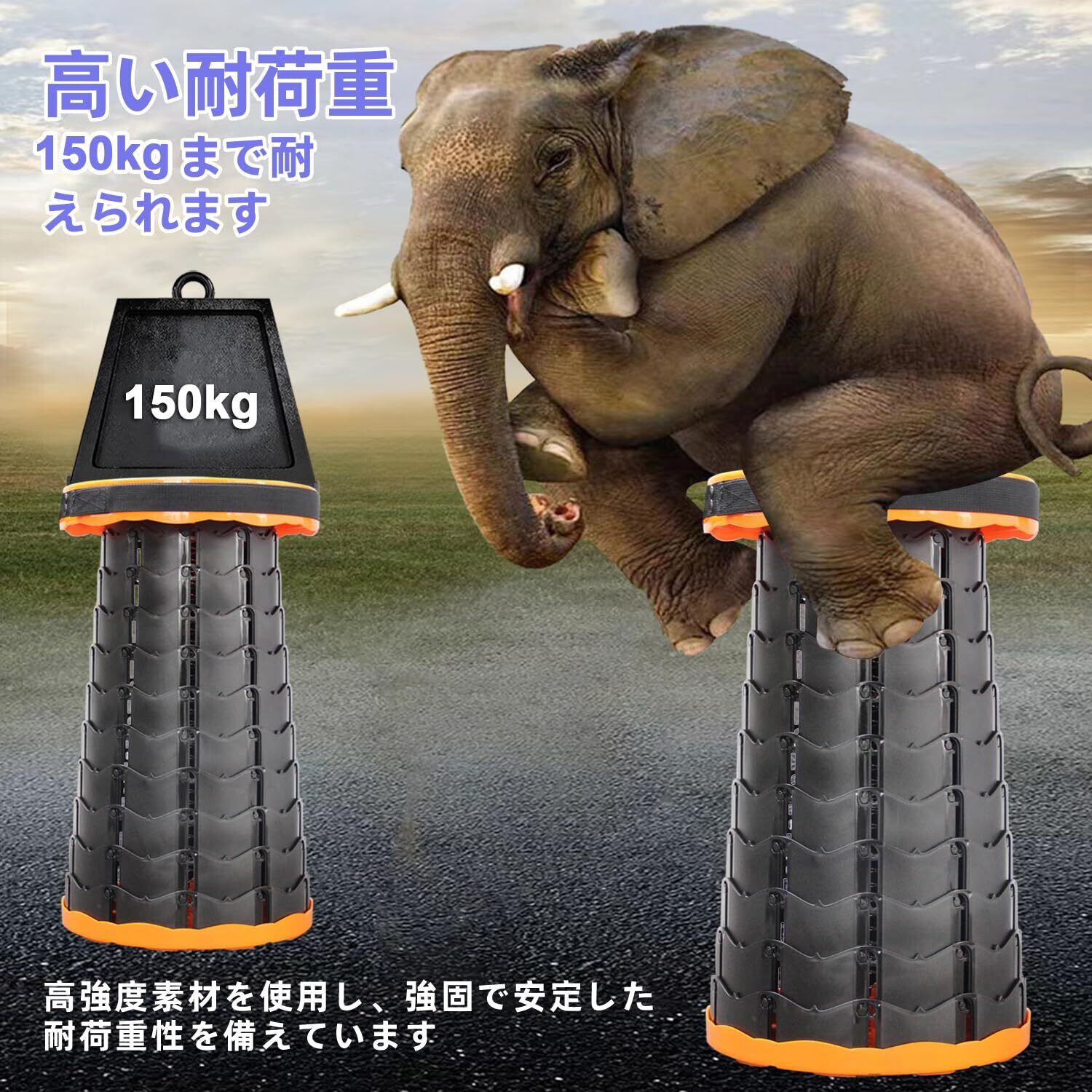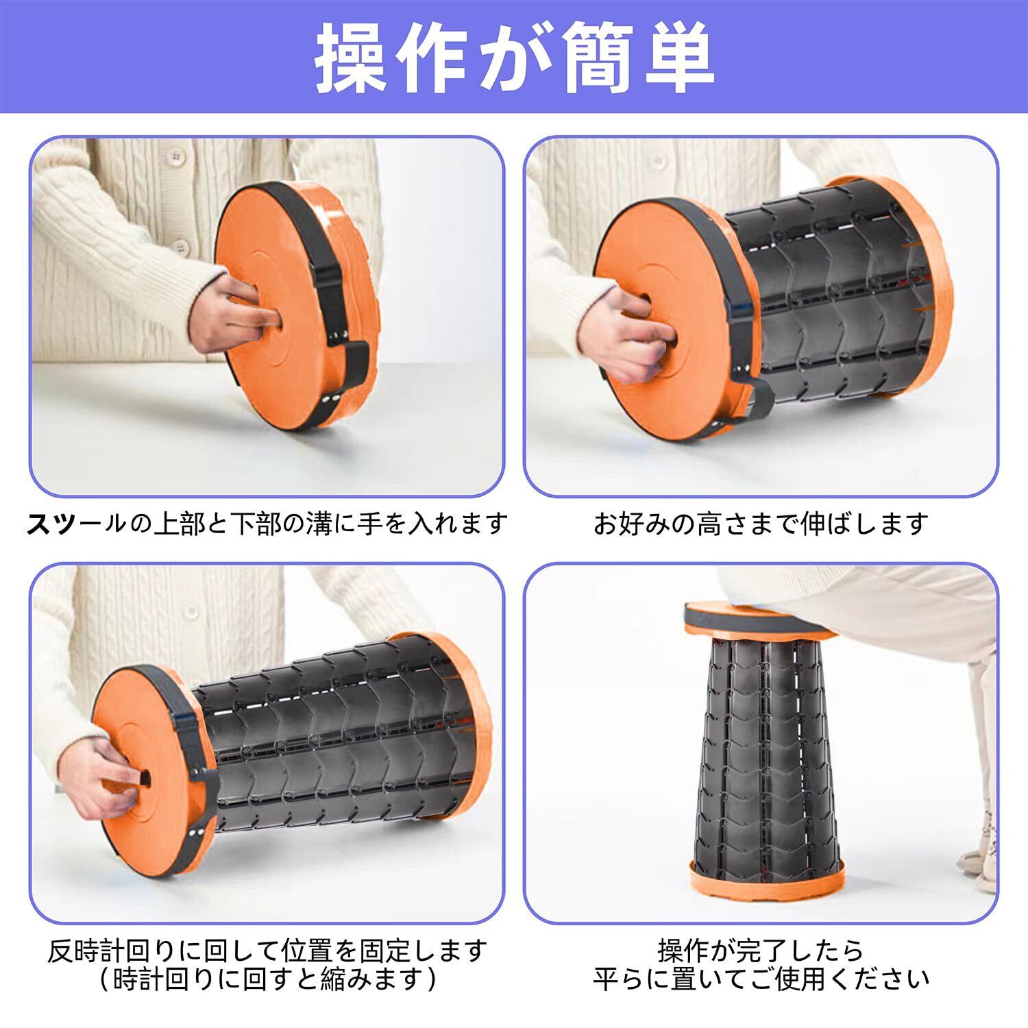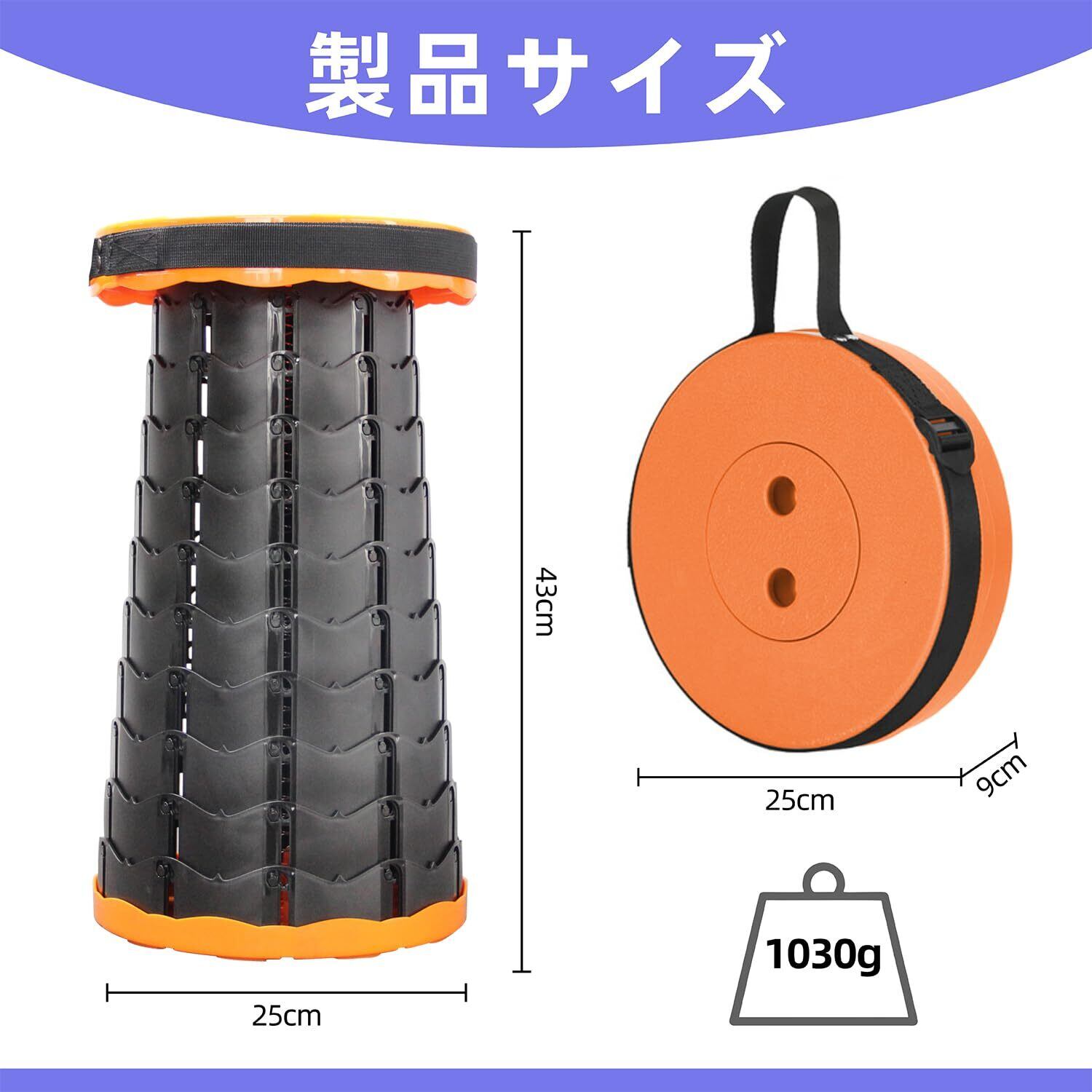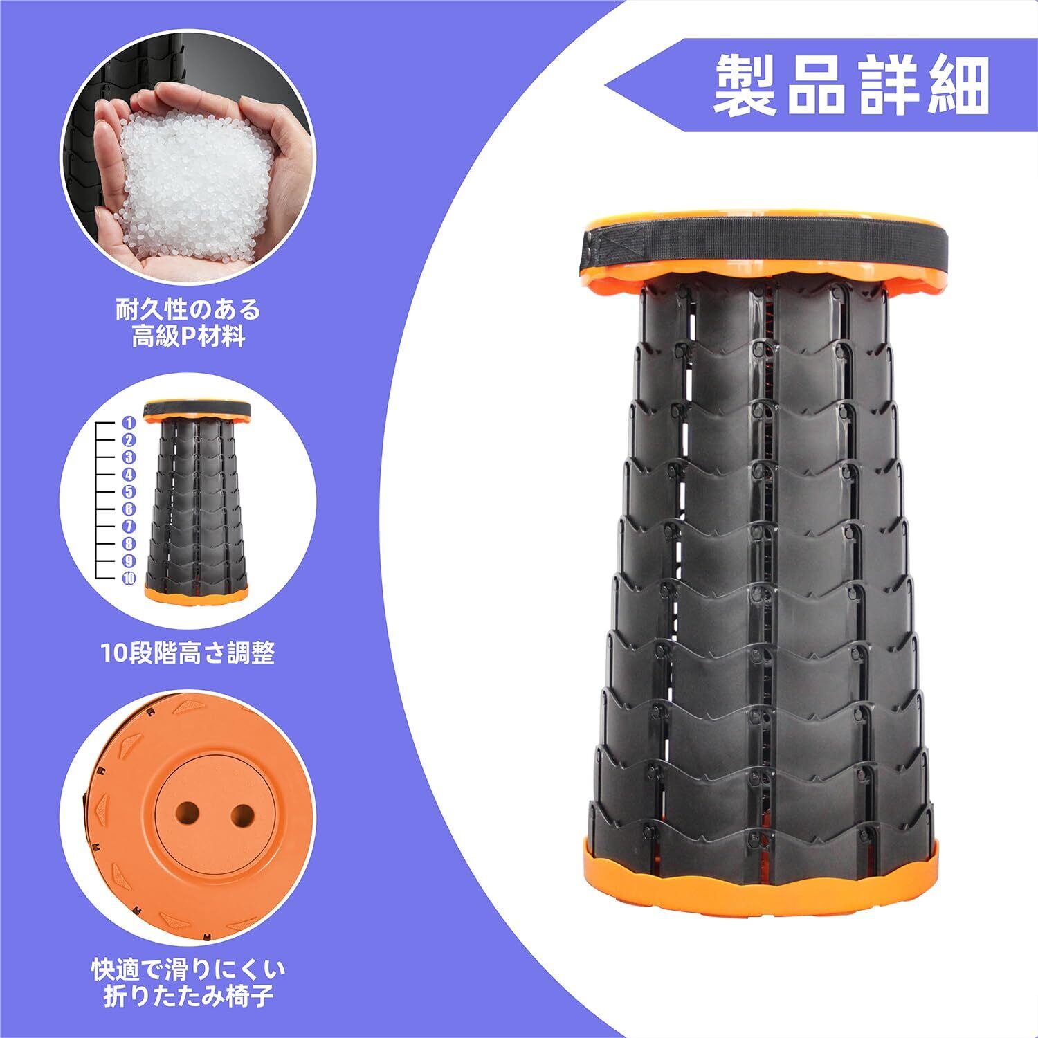 折りたたみ椅子 伸縮式 アウトドアチェア 折り畳み式 キャンプ椅子 軽量 コンパクト 持ち運び便利 耐荷重150KG 一秒開閉でき 10段階高さ 調整可能 9-43cm 釣り/フェス/運動会/観戦/屋内/屋外用 (オレンジブラック)