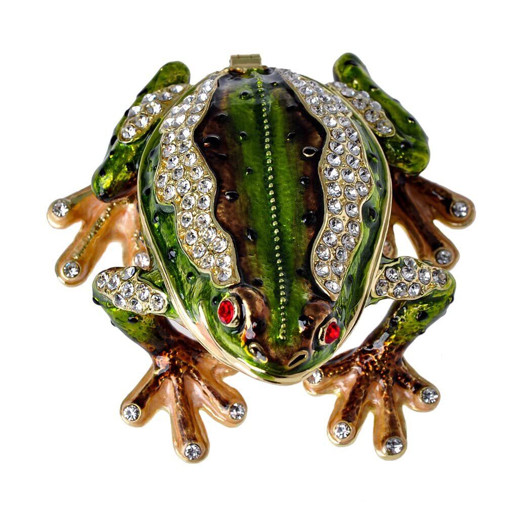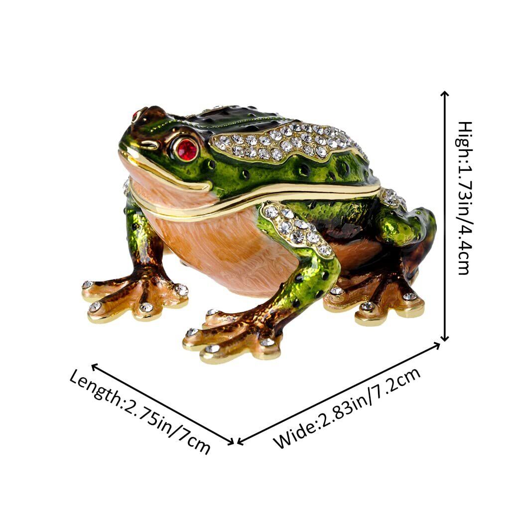 カエル 小物入れ ジュエリーボックス ヒンジ付き カエル 置物 クリスタル エナメル グリーン カエル ホームデコレーション 動物愛好家へのお土産ギフト