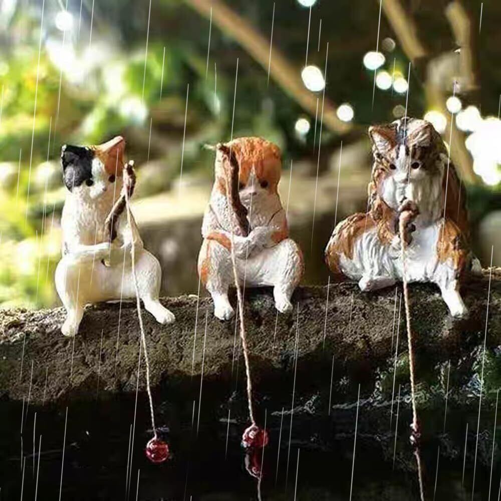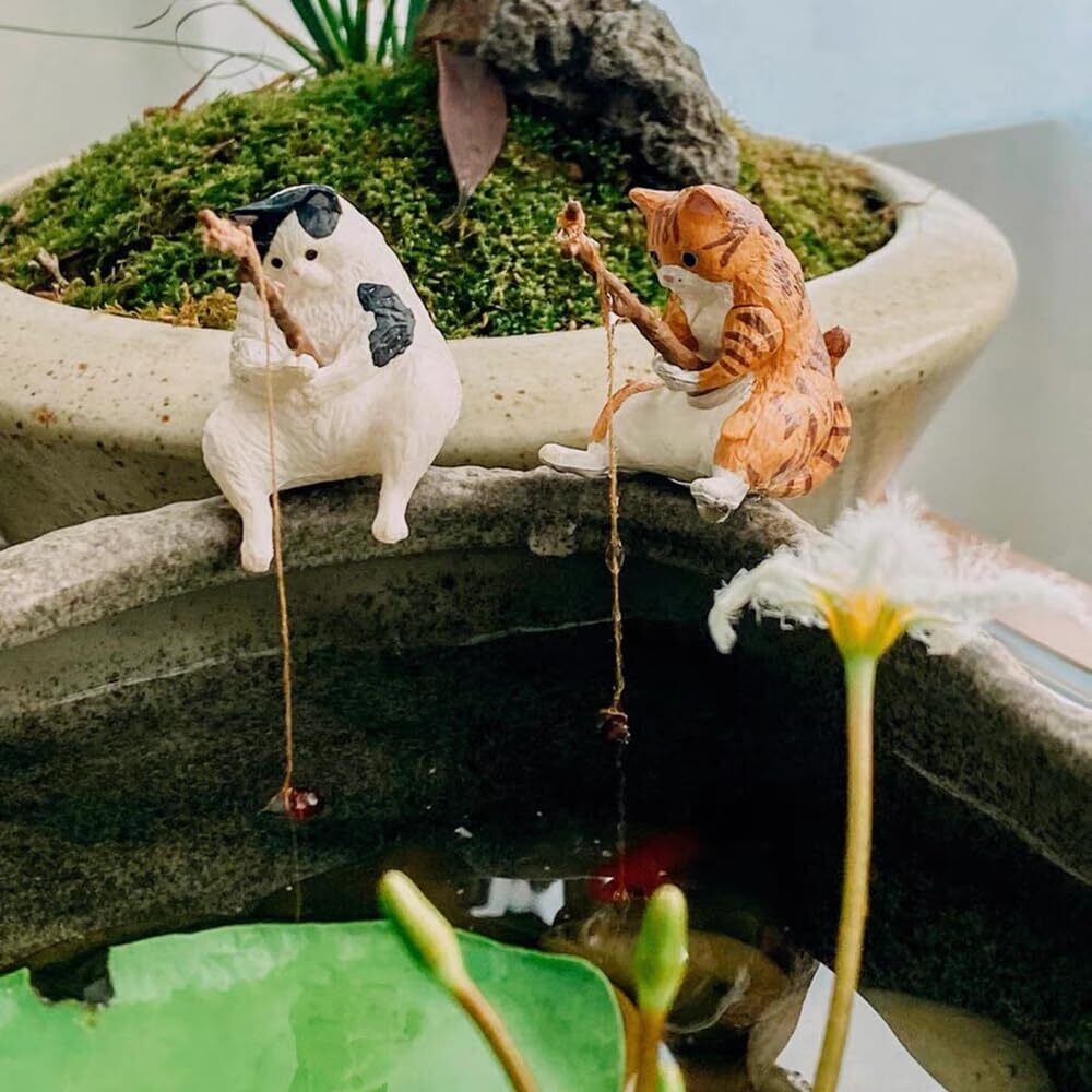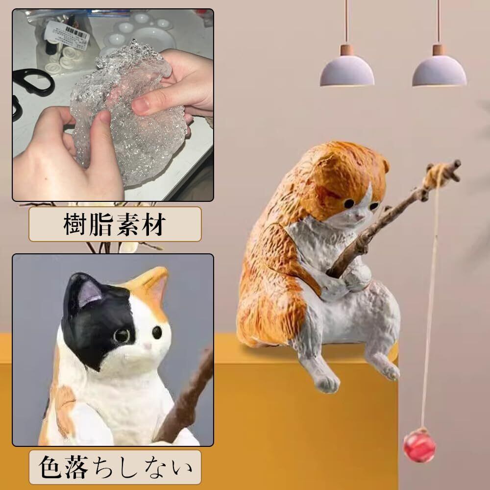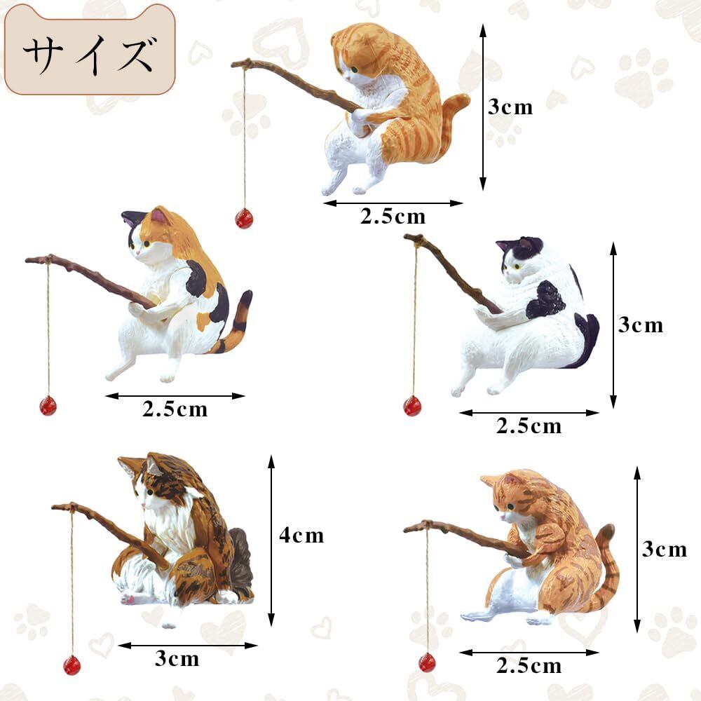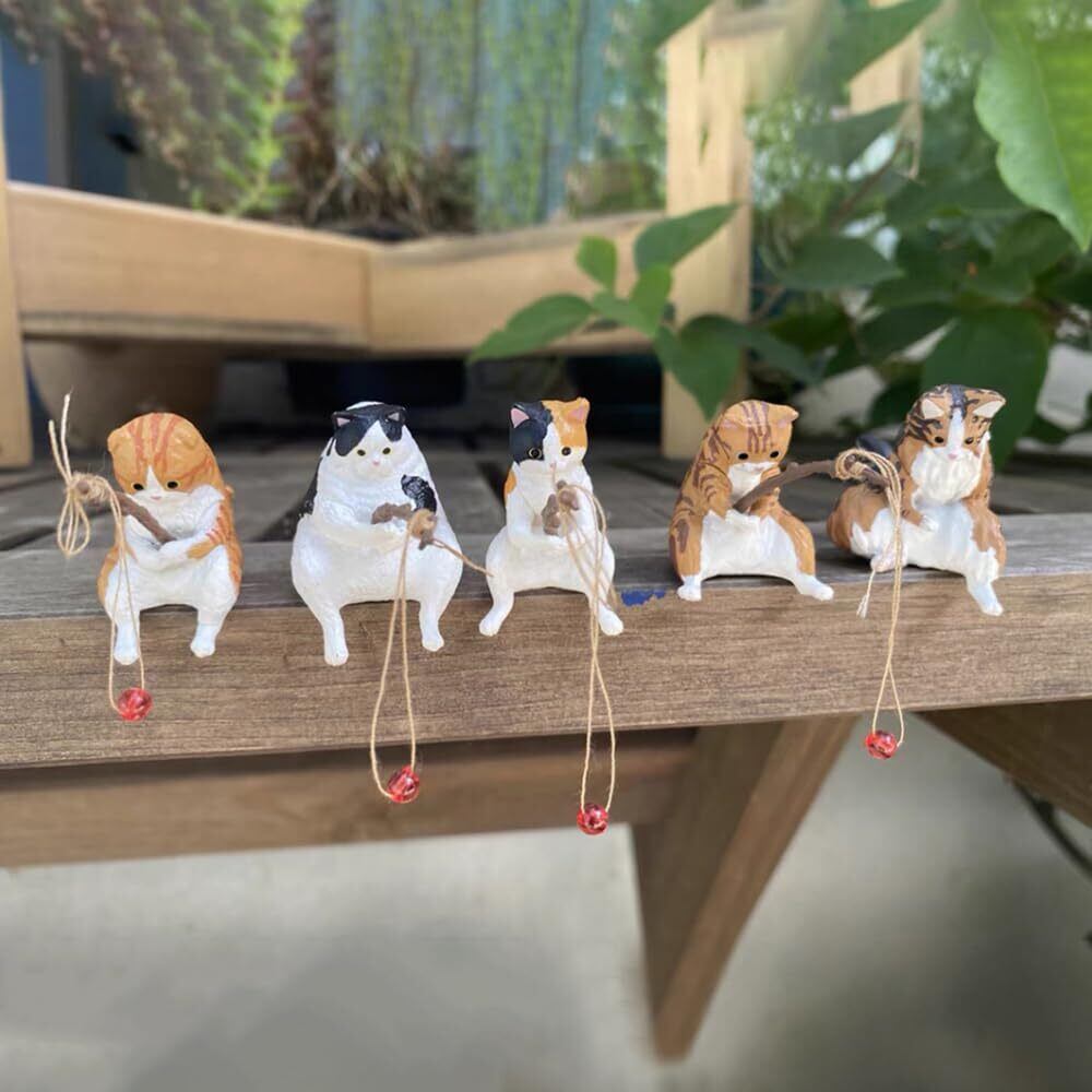 釣り猫 子猫釣り置物 猫釣り像 フィギュア 懸垂装飾品 猫モデル レジャー猫 猫釣り魚の水槽造景 水族館 雑貨装飾 庭の装飾 雰囲気を作る デコレーション 5点セット