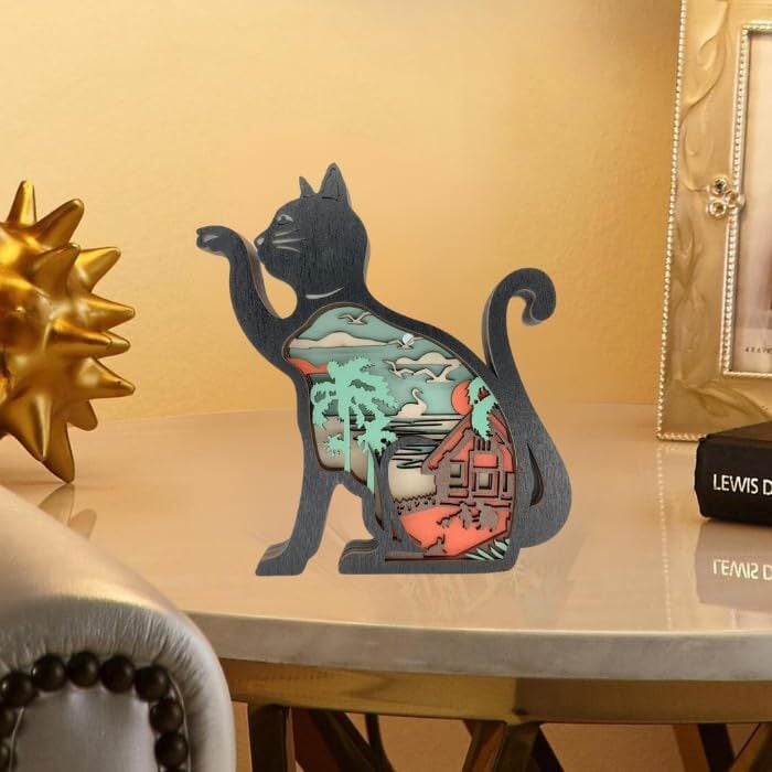 HARGIO 置物 インテリア 木製 オブジェ 北欧 インテリア雑貨 北欧雑貨 置き物 韓国 北欧インテリア 木製インテリア 雑貨 おしゃれ 可愛い 玄関 動物 小物 韓国雑貨 おもしろグッズ 人気 置きもの プレゼント (猫)
