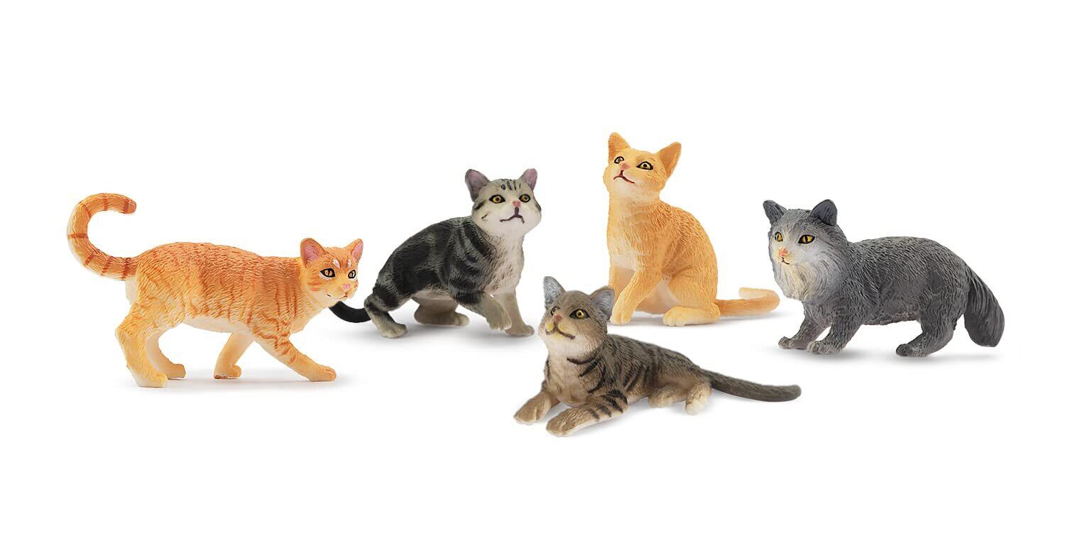 新型猫フィギュア登場:立ち姿、歩き姿、座り姿の猫のフィギュア8個入り(オレンジの猫2体、ノルウェージャンフォレストキャット2体、アメリカンワイヤーヘア2体、アメリカンショートヘア2体 )。長さは4.5cmから7.2cmです。