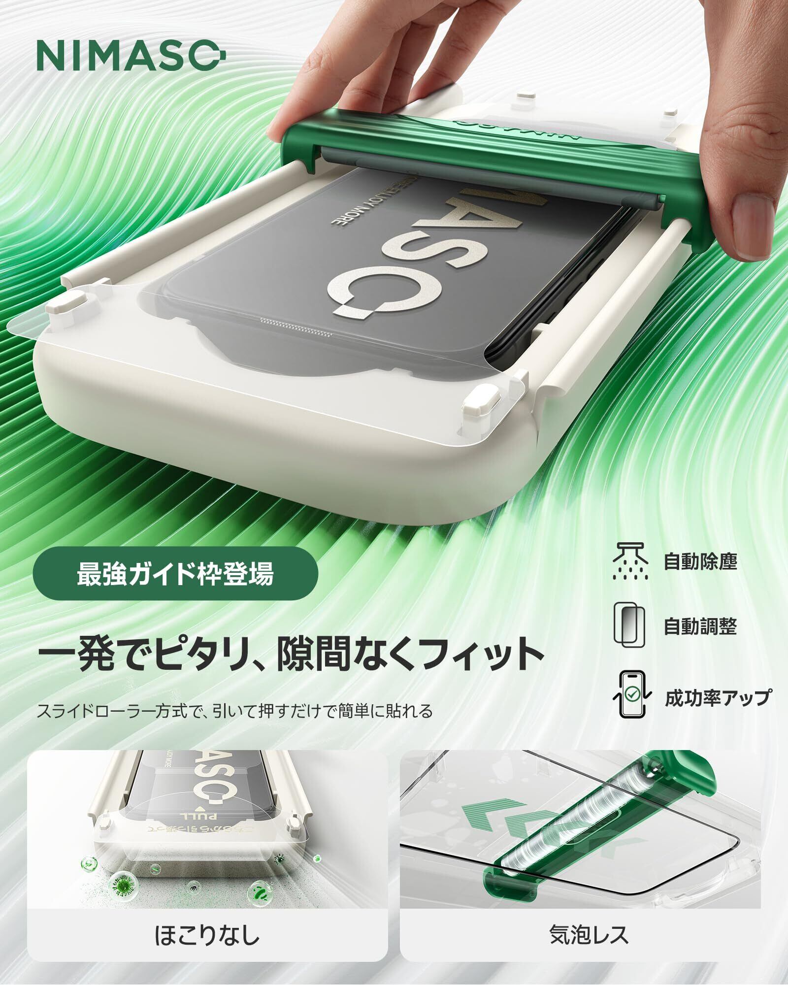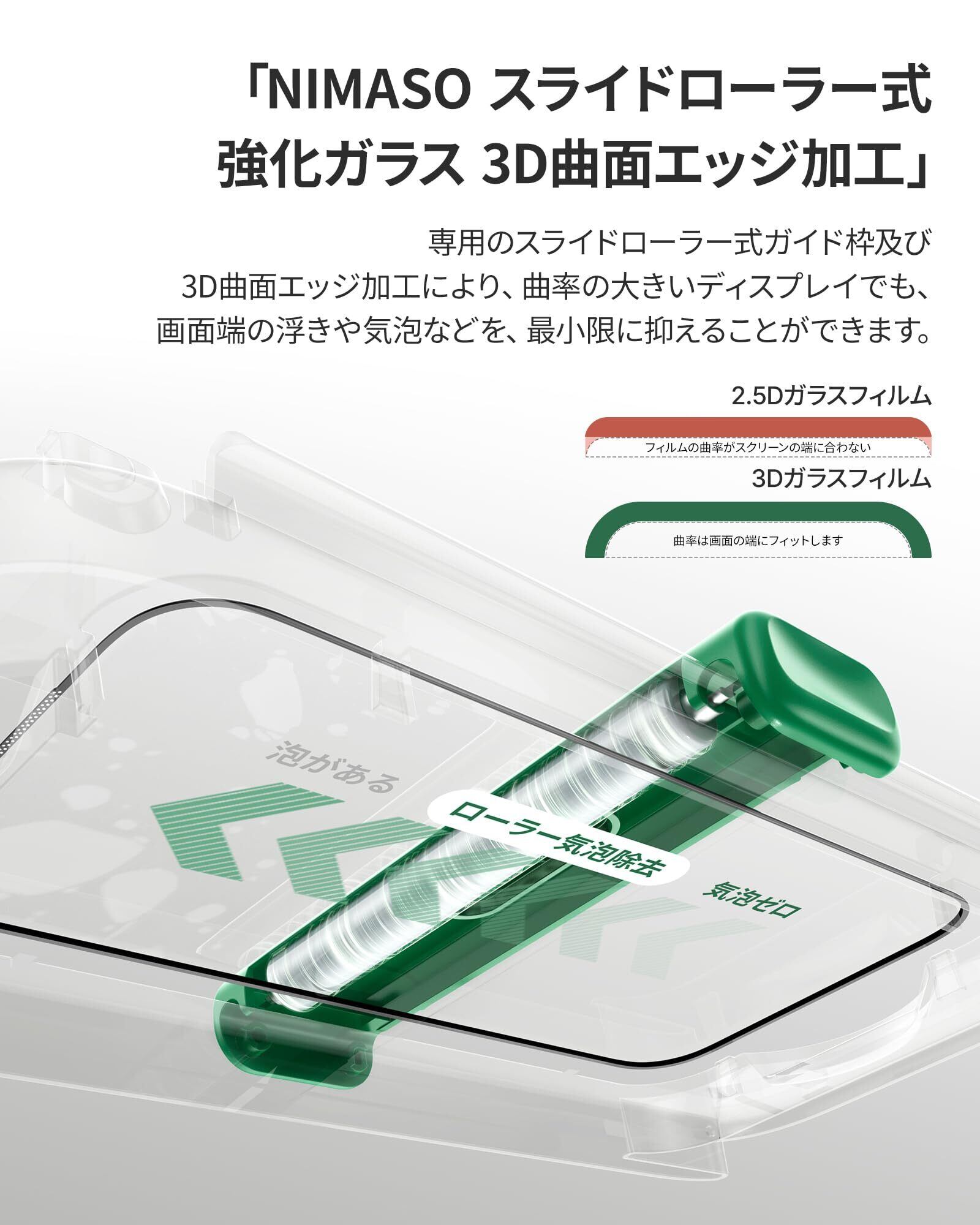 「バリ楽Roller」NIMASO ガラスフィルム iPhone Air用 スライドローラー式 強化ガラス 3D曲面エッジ加工 全面保護 黒縁あり 防塵メッシュ 指紋防止 貼付け簡単 保護フィルム 自動除塵 ガイド枠付き 1枚セット いPhone 17 エアー(6.5インチ)対応 DSP25F1736