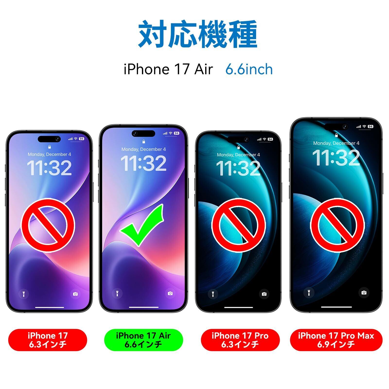 【アンチグレア・反射防止】対応機種:iPhone Air用アンチグレア ガラスフィルム。ガラス表面の反射防止加工が、光の映り込みや眩しさを大幅に低減します。視認性を向上させて画面を見えやすくすることで、長時間のスマホ操作や動画視聴でも目に優しく、疲れにくいです。