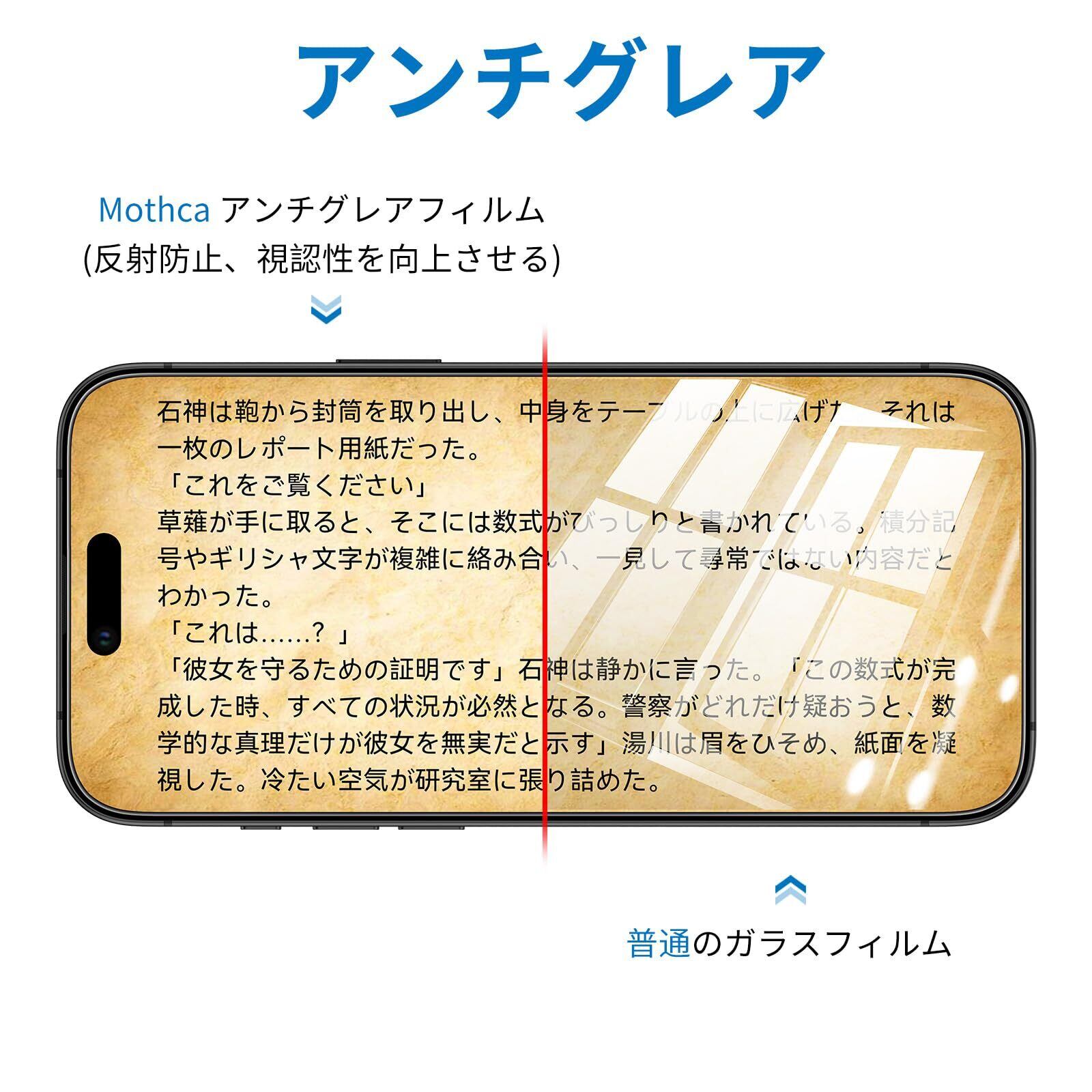 Mothca アンチグレア iPhone Air対応 ガラスフィルム 保護フィルム 強化ガラス サラサラ タッチ感 指紋防止 反射防止 ゲームフィルム ガイド枠付き 液晶 日本旭硝子製素材 硬度9H 飛散/キズ防止 衝撃吸収 撥油性 疎水 アイフォン エア(6.6インチ)対応