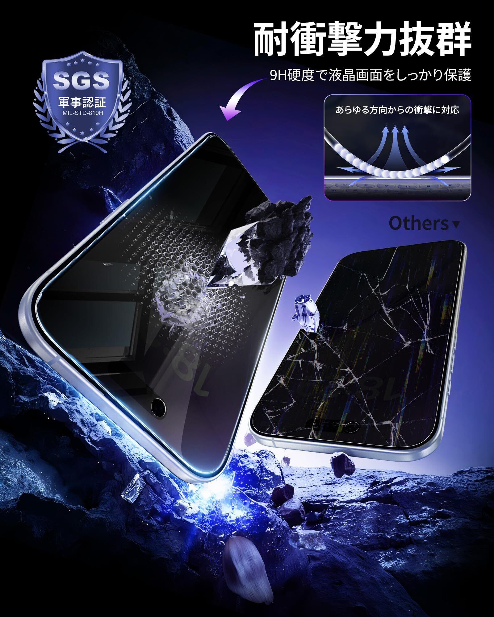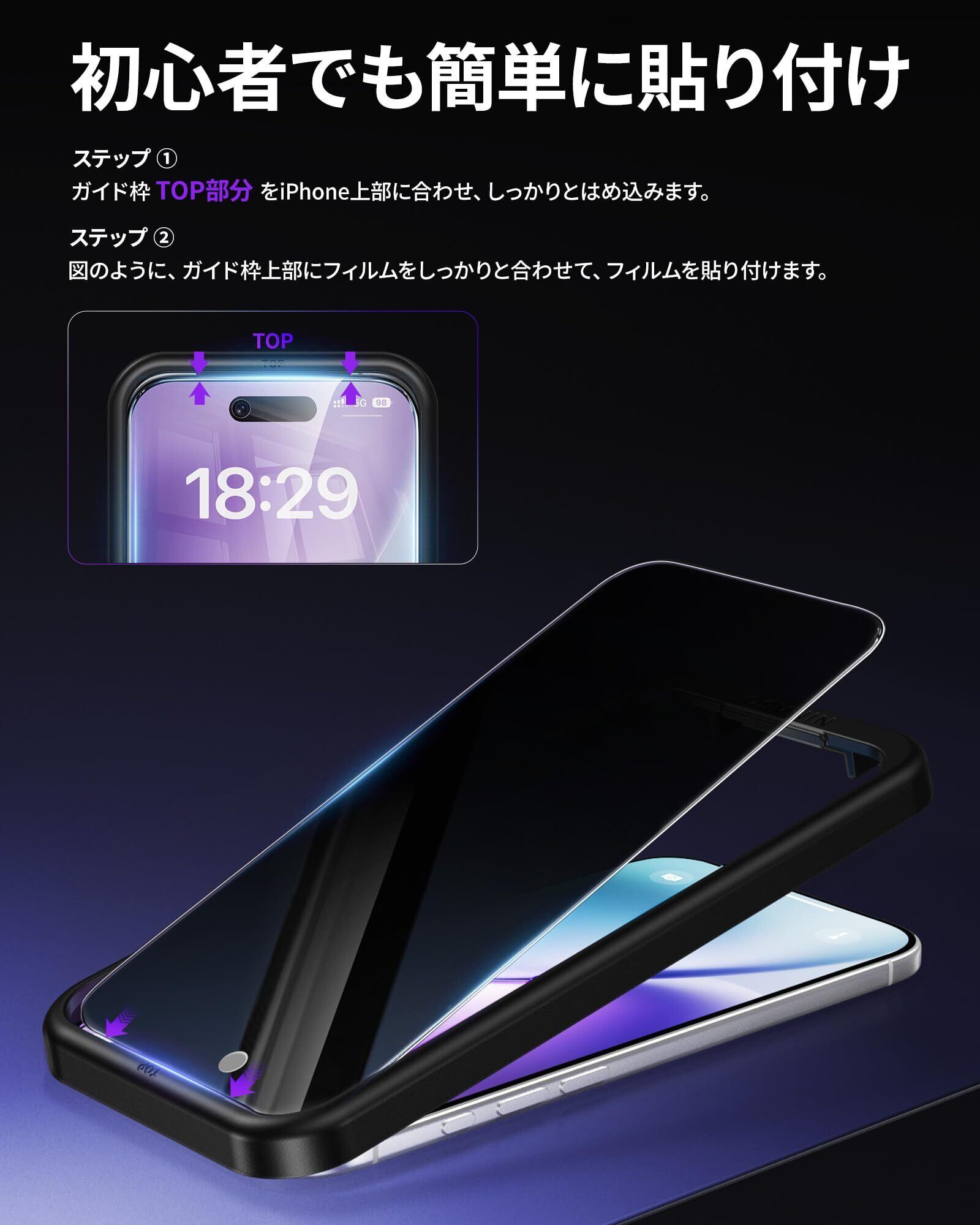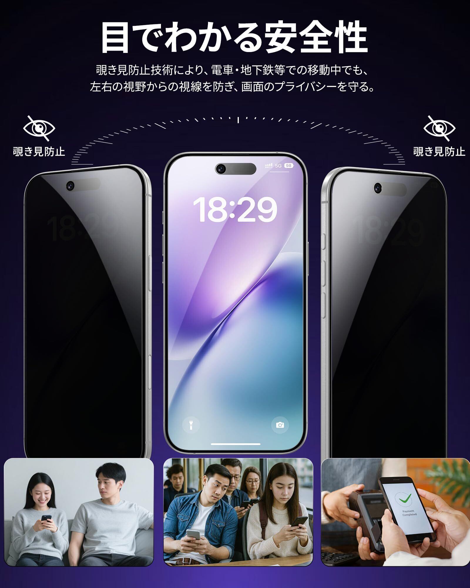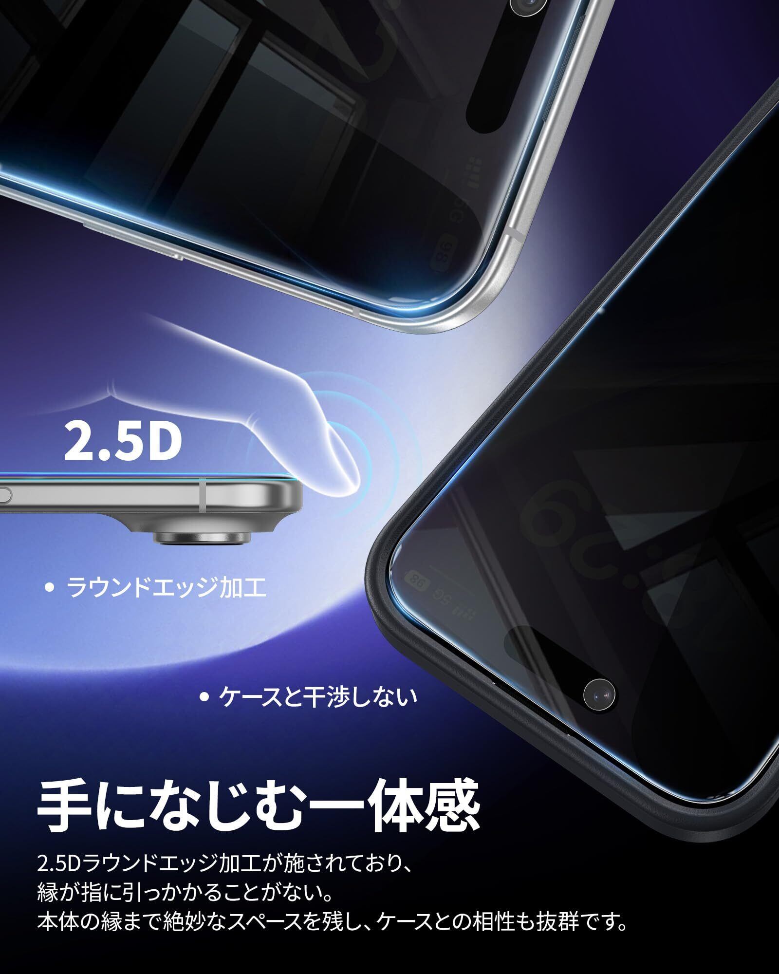 特徴 覗き見防止、指紋防止、気泡ゼロ、失敗なし、飛散防止、スクラッチ防止 、ケースと干渉せず