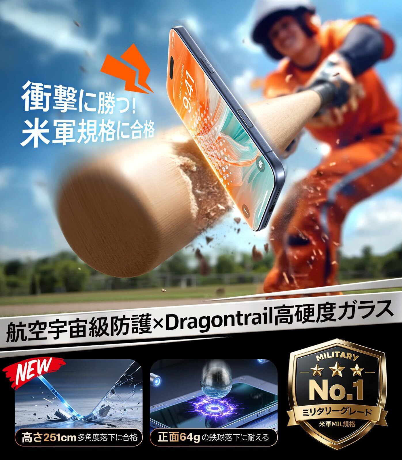 【のぞき見防止と衝撃保護、同時実現!】日本AGC製「Dragontrail」高硬度ガラスを採用。航空宇宙級防護技術を応用し、9Hを超えるHv673の硬度を実現。耐衝撃性は市販品の約6倍で、日常の落下や摩擦から画面を徹底保護。世界累計販売9600万枚、注目の「iPhone画面破損報告0件」(※自社調べ)の実績を誇ります。TORRAS iPhone Air(6.5インチ)用ケースと併用すれば、まさに鉄壁の防御力。覗き見防止機能だけでなく、防摔も業界最高水準のプロ仕様です。※米軍耐久テスト「MIL-STD-810G」認定(認証番号:GZMR220300626209)(対応 iPhone Air ガラスフィルム)
