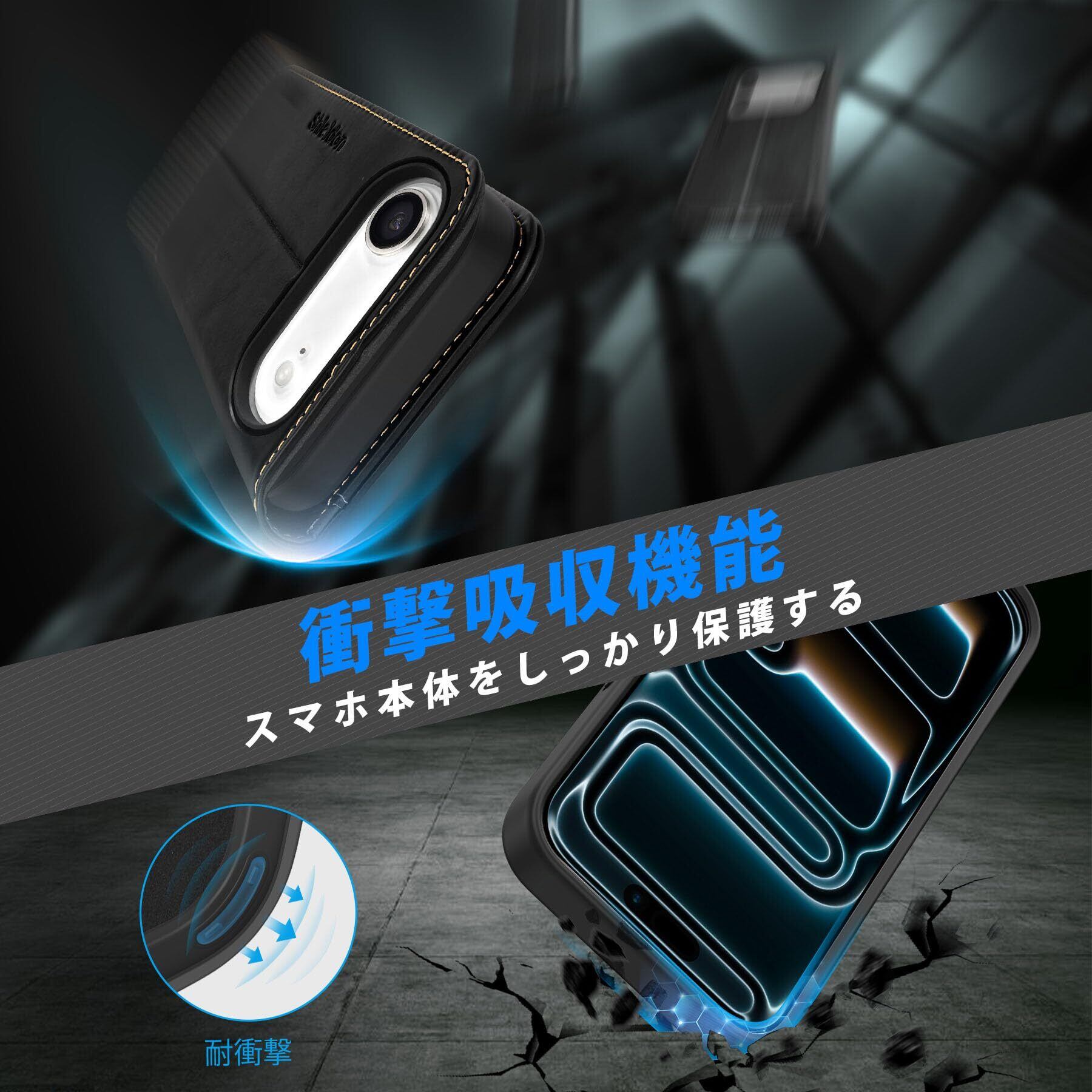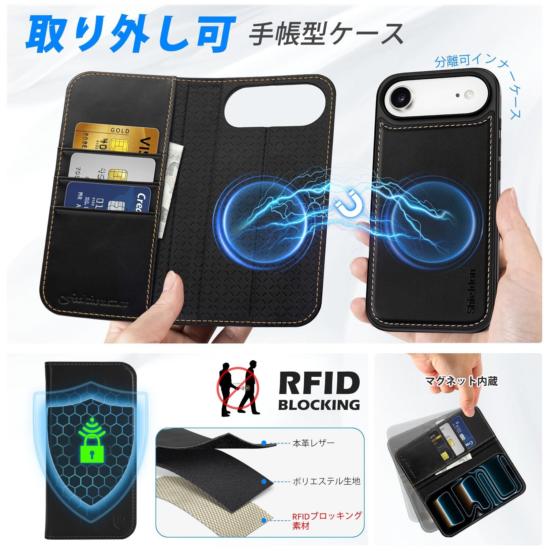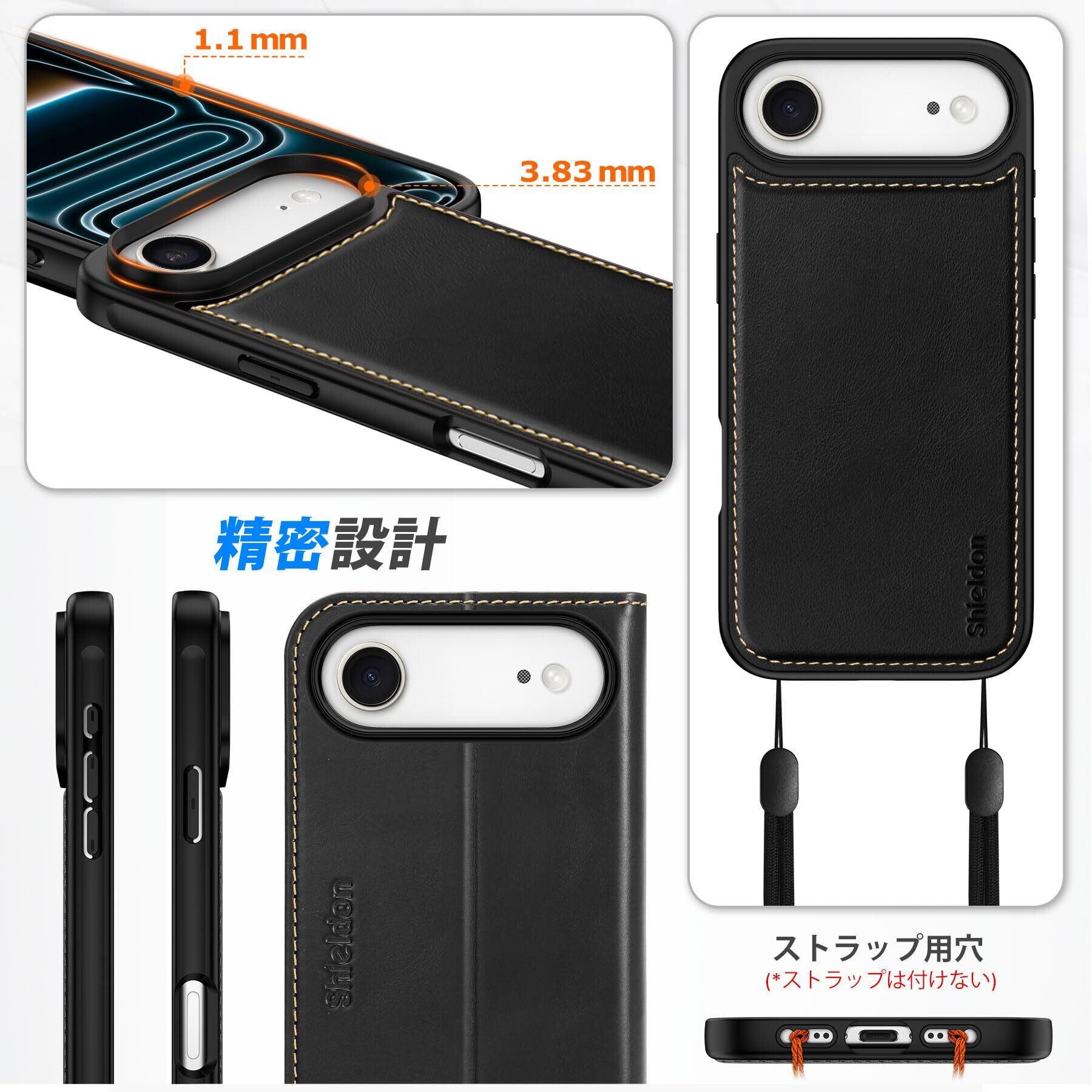 SHIELDON iPhone Air 対応 手帳型ケース 2in1分離式 本革レザー 6.5インチ 5G カード収納 [RFIDブロッキング] 取り外し自由 カバー単体ワイヤレス充電可 横置きスタンド機能 ストラップ穴付き 衝撃吸収 アイホン Air対応 スマホケース 2025年発売 2-in-1分離式 レトロブラック