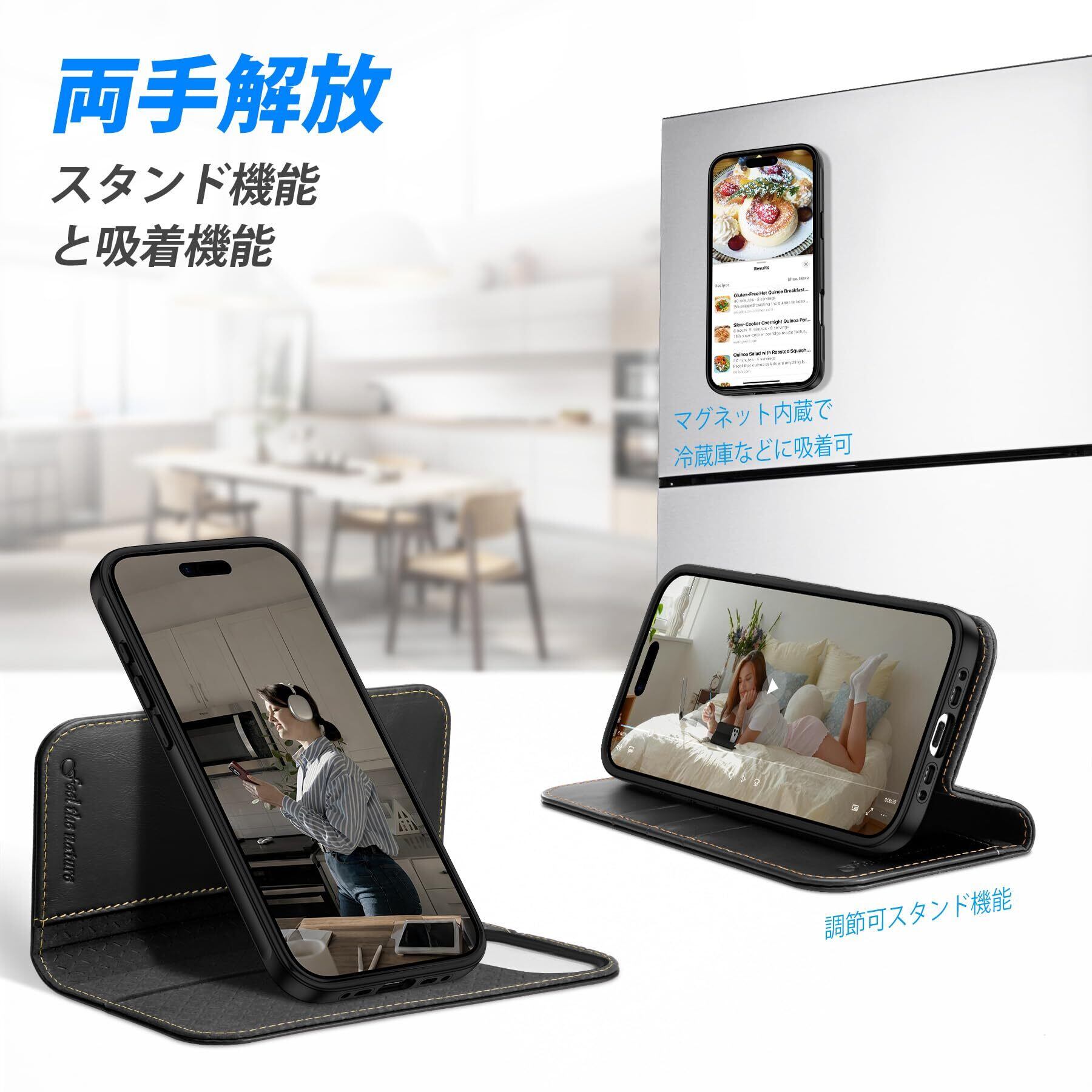 【マグネット付き・スタンド機能】内蔵強力マグネットにより、フタがピタッと確実に閉まります。背面を折り曲げるだけで、ケースがそのままスタンドになります。お好みの角度に調節可能で、手放しでも動画視聴や読書を快適にお楽しみいただけます。