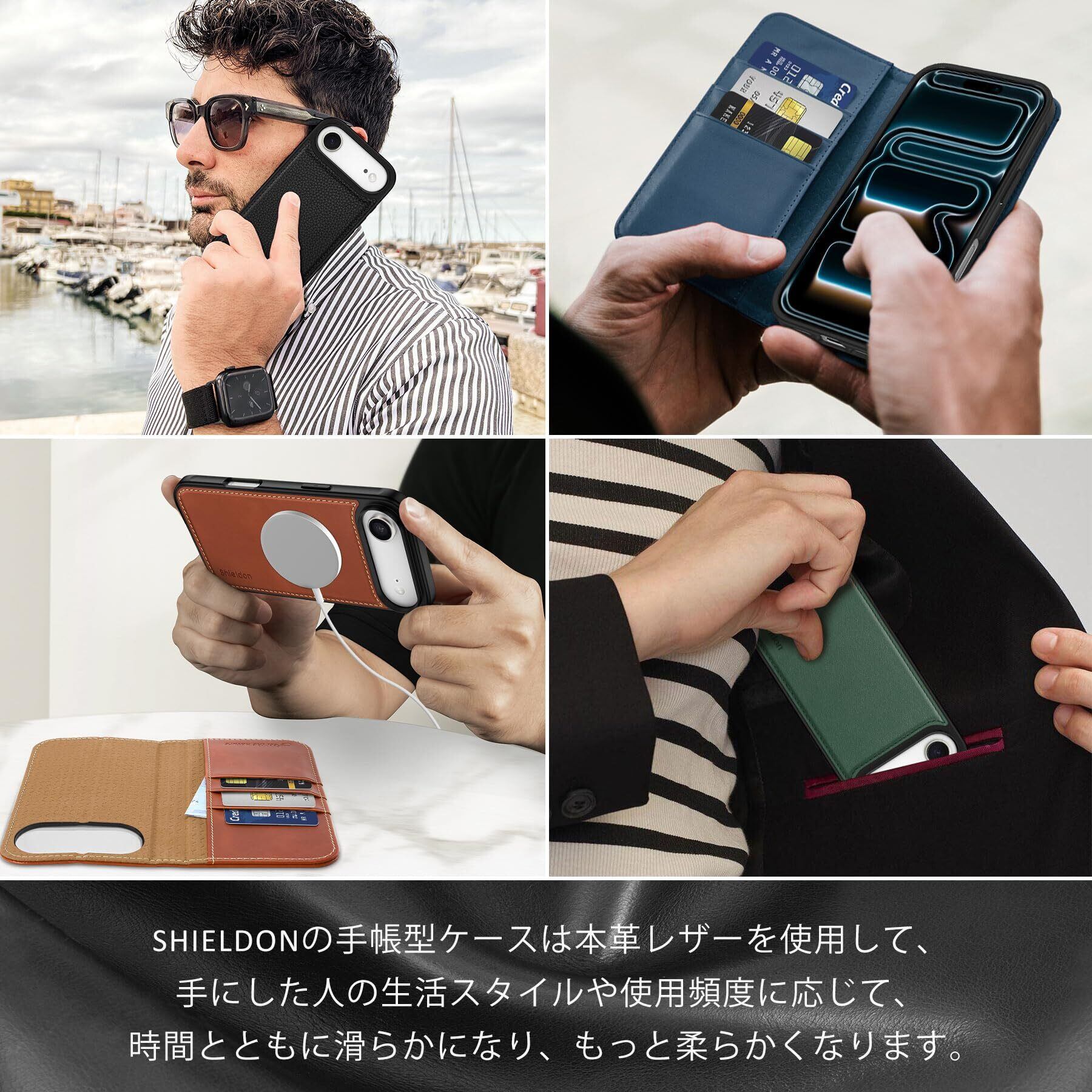 【背面カバー分離可・ワイヤレス充電対応】手帳型ケース+背面カバーとしても、超薄型の背面カバー単体としても使える、2in1のスマホケースです。背面カバー単体を使用時には、磁気充電・ワイヤレス充電・車載ホルダー充電などに対応しています。本革のカバーとプロテクション内装を自由に組み合わせて、フル機能の財布型プロテクトケースとして使用したり、内装を外せば軽量スタイルを楽しめたり。気分や状況に合わせて使い分けられるので、とても便利です。