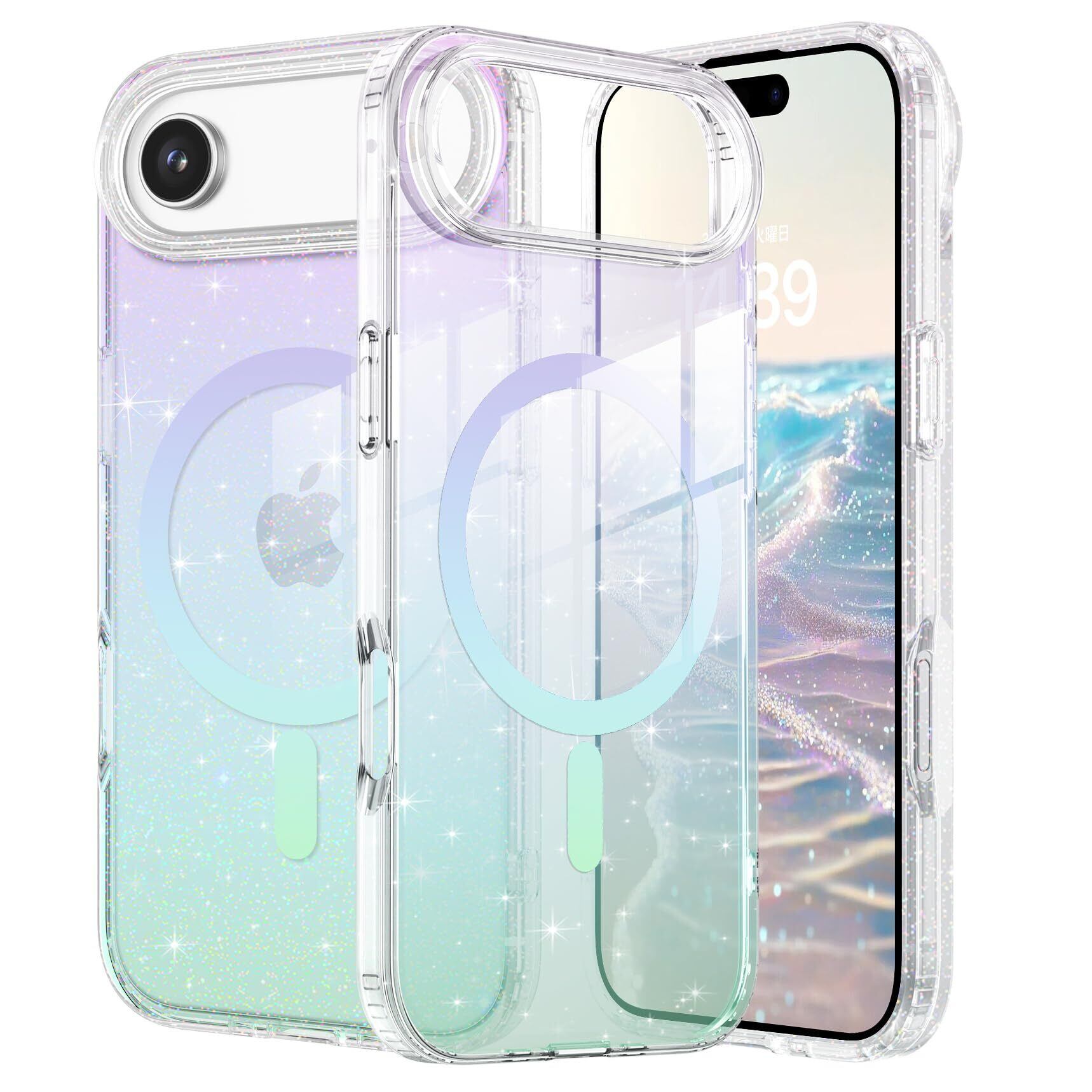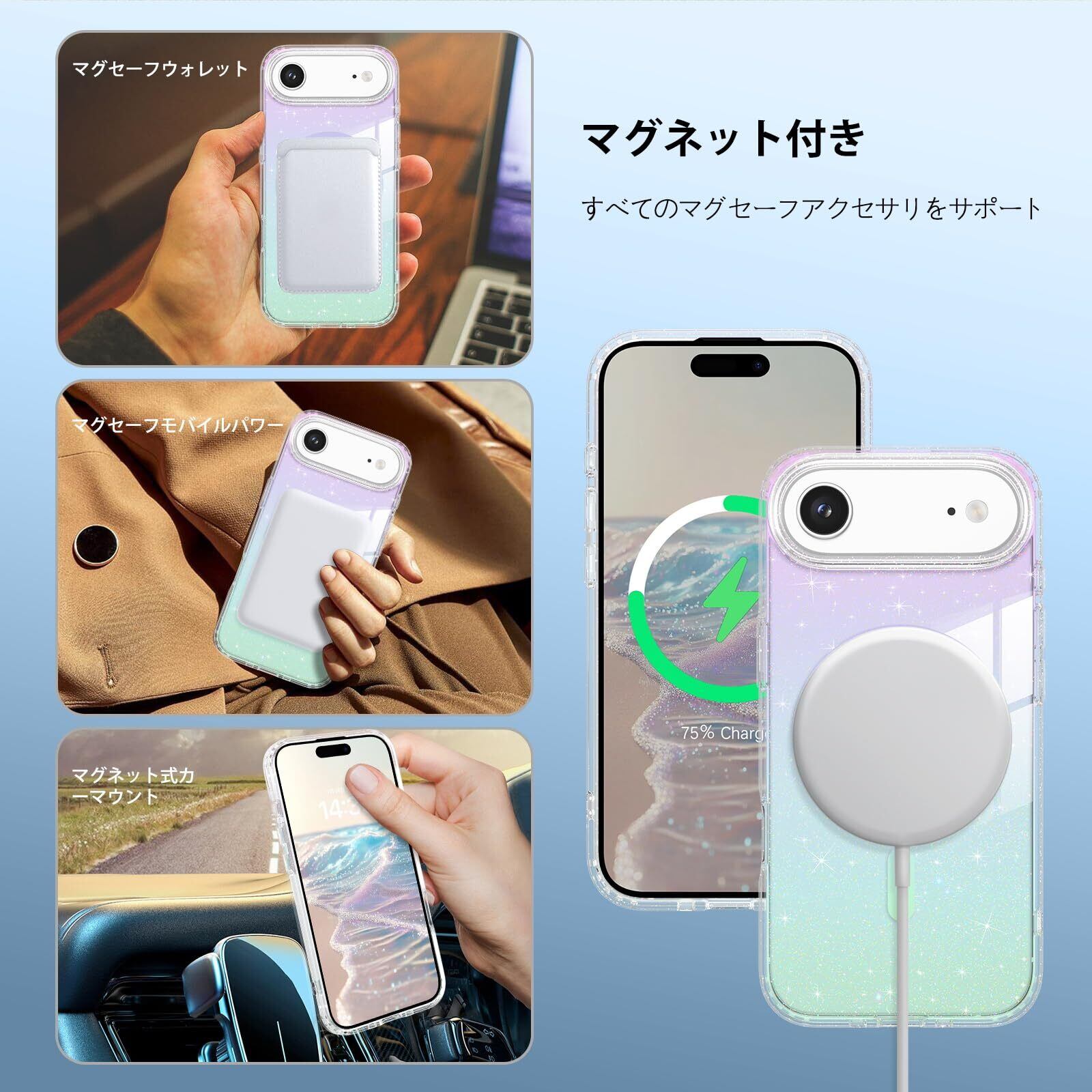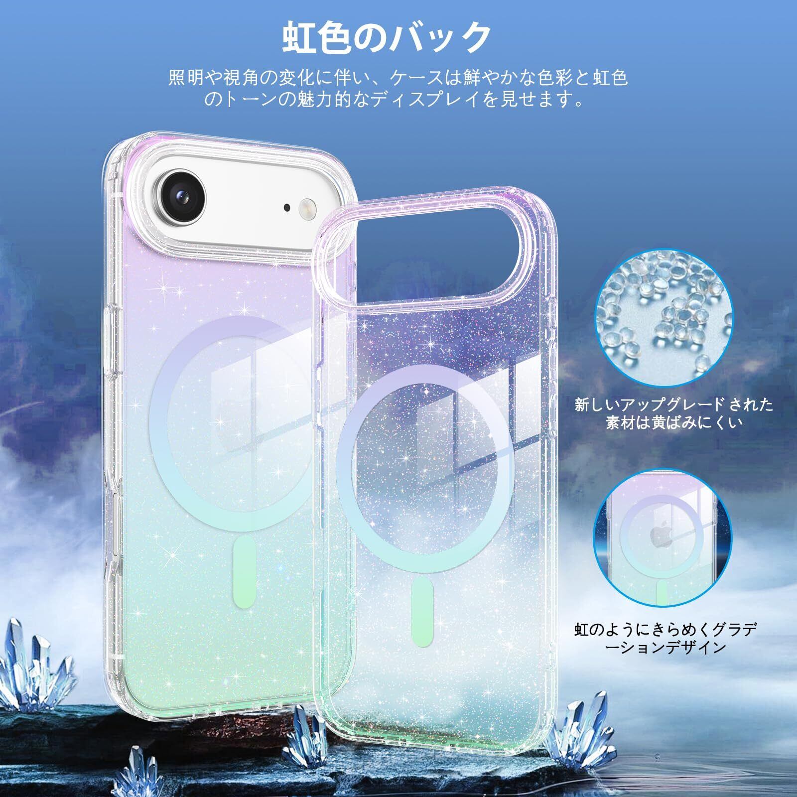 DUEDUE iPhone Air ケース MagSafe対応 マグネット搭載 アイフォン Air ケース 透明グラデーショ キラキラ 虹のグラデーション ワイヤレス充電可能 全面保護 指紋防止 耐衝撃 黄変防止 おしゃれ 軽量 耐衝撃 滑り防止