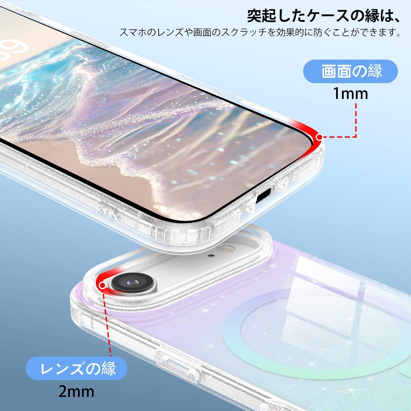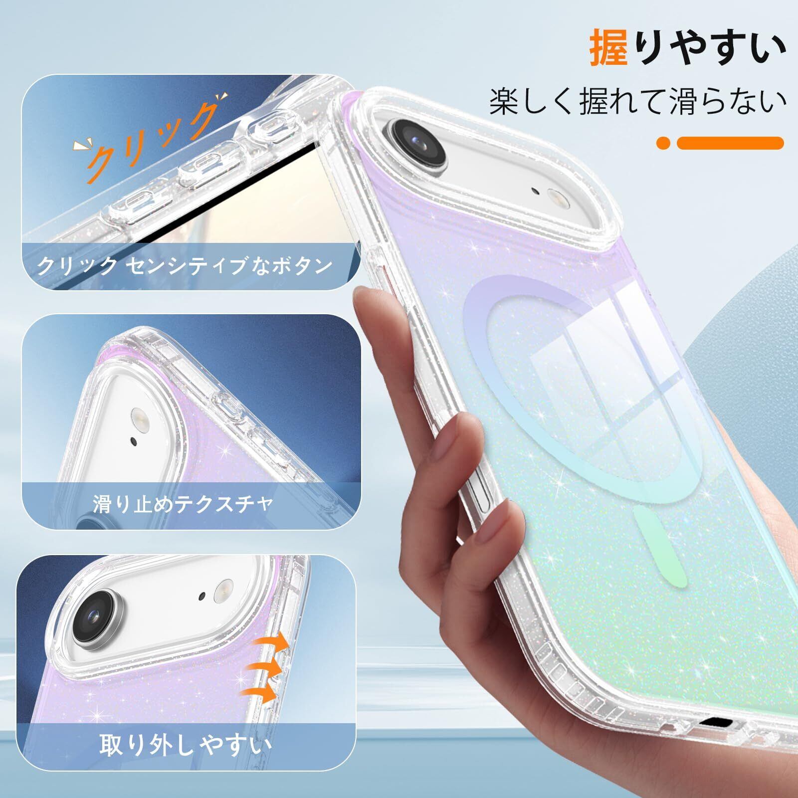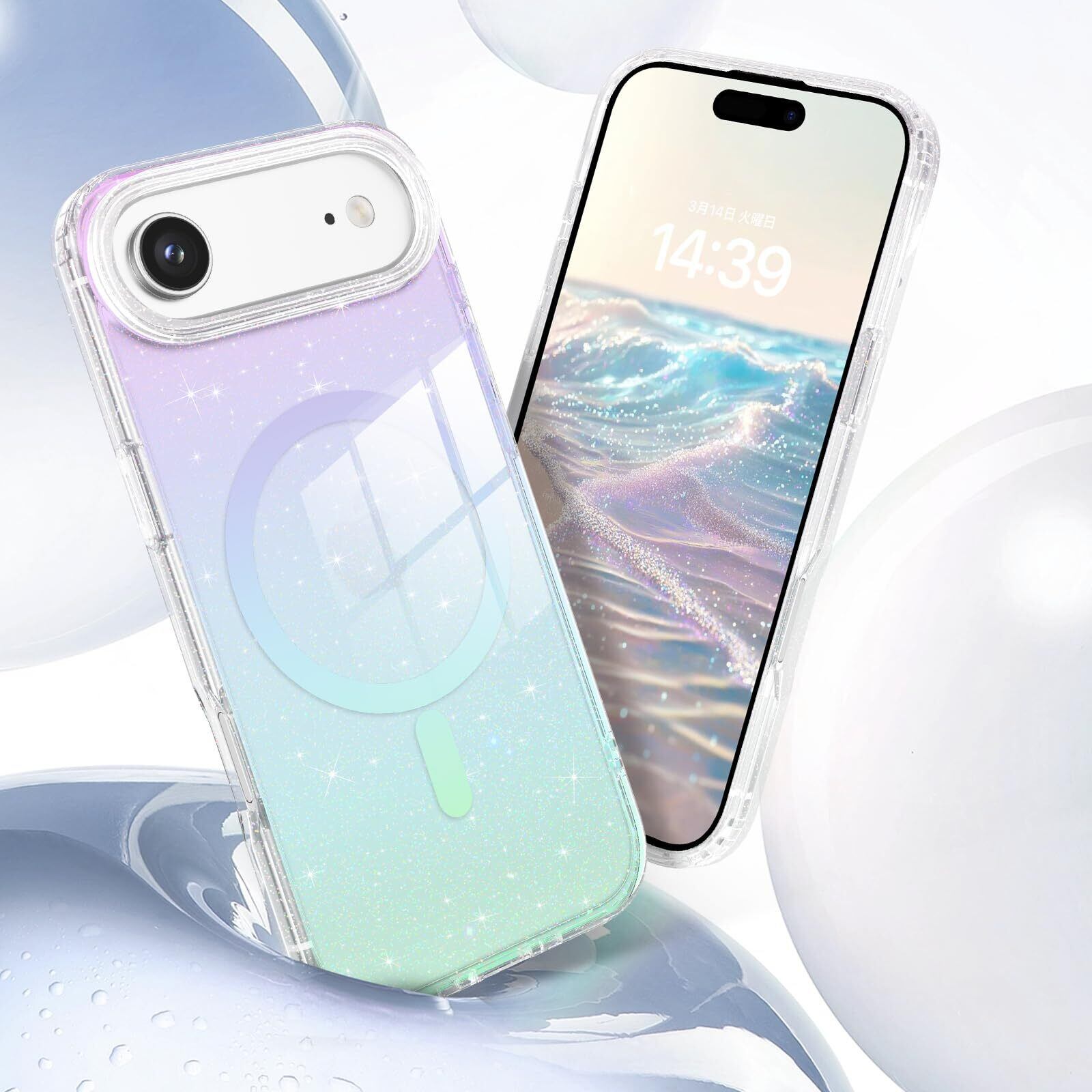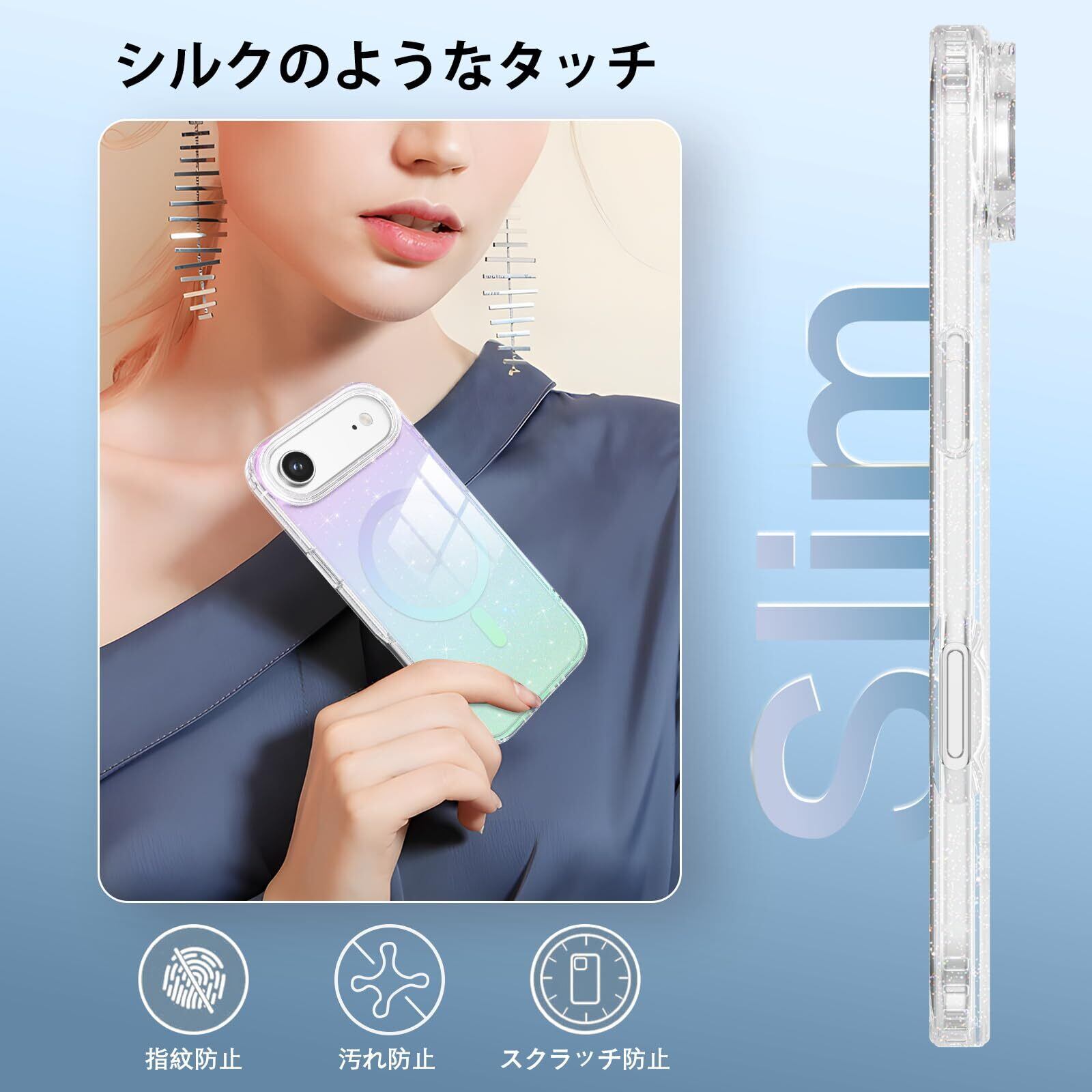 DUEDUE iPhone Air ケース MagSafe対応 マグネット搭載 アイフォン Air ケース 透明グラデーショ キラキラ 虹のグラデーション ワイヤレス充電可能 全面保護 指紋防止 耐衝撃 黄変防止 おしゃれ 軽量 耐衝撃 滑り防止