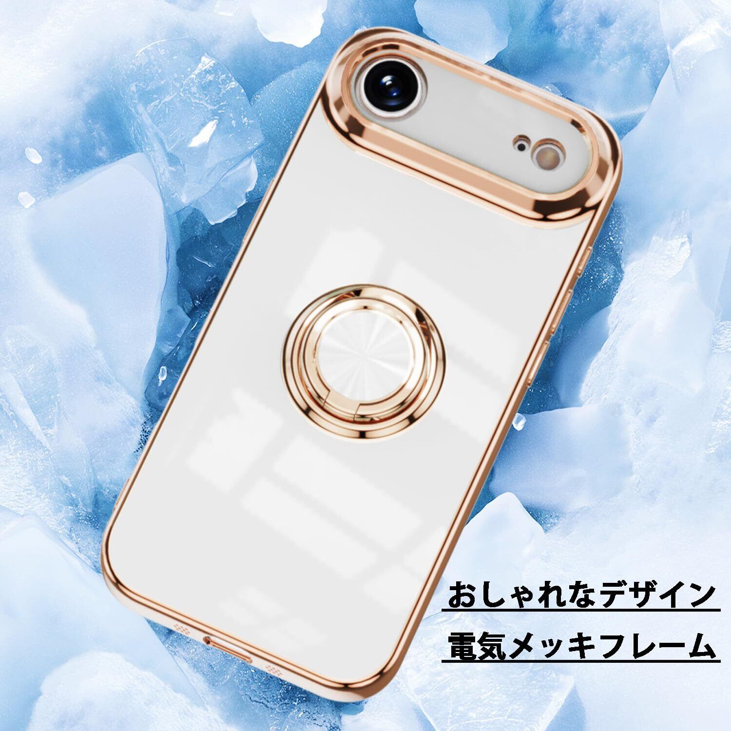 スマホケース 対応 iPhone17 Air 用 ケース リング付き メッキ加工 レンズ保護 tpu ソフト ストラップホール付き 耐衝撃 スリム おしゃれ 携帯カバー アイフォン17 Air 用 ケース (ホワイト)